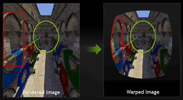 Так как графические процессоры изначально спроектированы для получения обычного двумерного изображения, они не имеют специальной поддержки рендеринга специально растянутых изображений для систем виртуальной реальности. Вопрос приходится решать программным способом, отрисовывая 3D-картинку в нормальном режиме и сжимая изображение на периферии перед подачей его в VR-устройство.