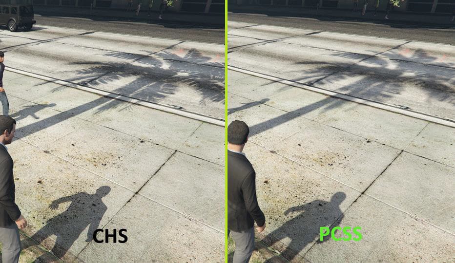 Игра Grand Theft Auto V использует пару таких технологий от Nvidia: ShadowWorks Percentage-Closer Soft Shadows (PCSS) и Temporal Anti-Aliasing (TXAA), которые улучшают и так неплохую графику в игре. PCSS — это специальная техника рендеринга теней, имеющая лучшее качество, по сравнению с типичными методами мягких теней. PCSS имеет три преимущества: степень мягкости краёв теней зависит от расстояния между объектом, отбрасывающим тень и поверхностью, на которой она рисуется, также обеспечивается более качественная фильтрация, снижающая количество артефактов в виде рваных краёв теней, а использование теневого буфера позволяет грамотно обрабатывать пересечения теней от разных объектов и не допускать появления «сдвоенных» теней.