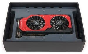 Palit Geforce GTX 980 Super JetStream 4096 МБ 256-битной GDDR5 PCI-E — очень интересное решение из когорты топовых однопроцессорных ускорителей. Оно интересно прежде всего своей системой охлаждения, которая обеспечивает работу карты при малых нагрузках (в 2D) при полностью выключенных вентиляторах, а следовательно, шума от такой видеокарты нет. Карта занимает 3 слота в системном блоке, что необходимо учитывать при выборе. Маленьким минусом является отсутствие переходников Mini-DP-to-DP в комплекте поставки, поскольку без дополнительных адаптеров карту можно подключить только через HDMI. Что касается привлекательности по соотношению цены и возможностей, то, увы, на момент написания статьи Geforce GTX 980 в этом плане не блещет. Однако цены имеют свойство меняться, надо следить за ними и корректировать выводы самостоятельно.