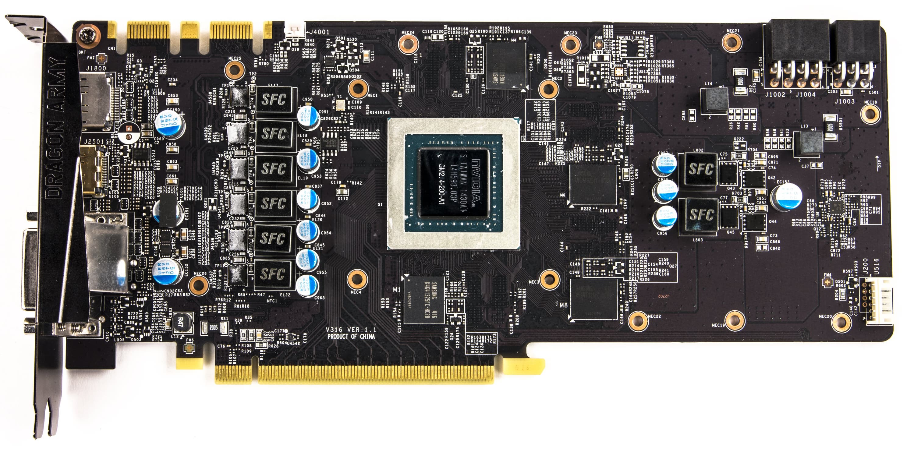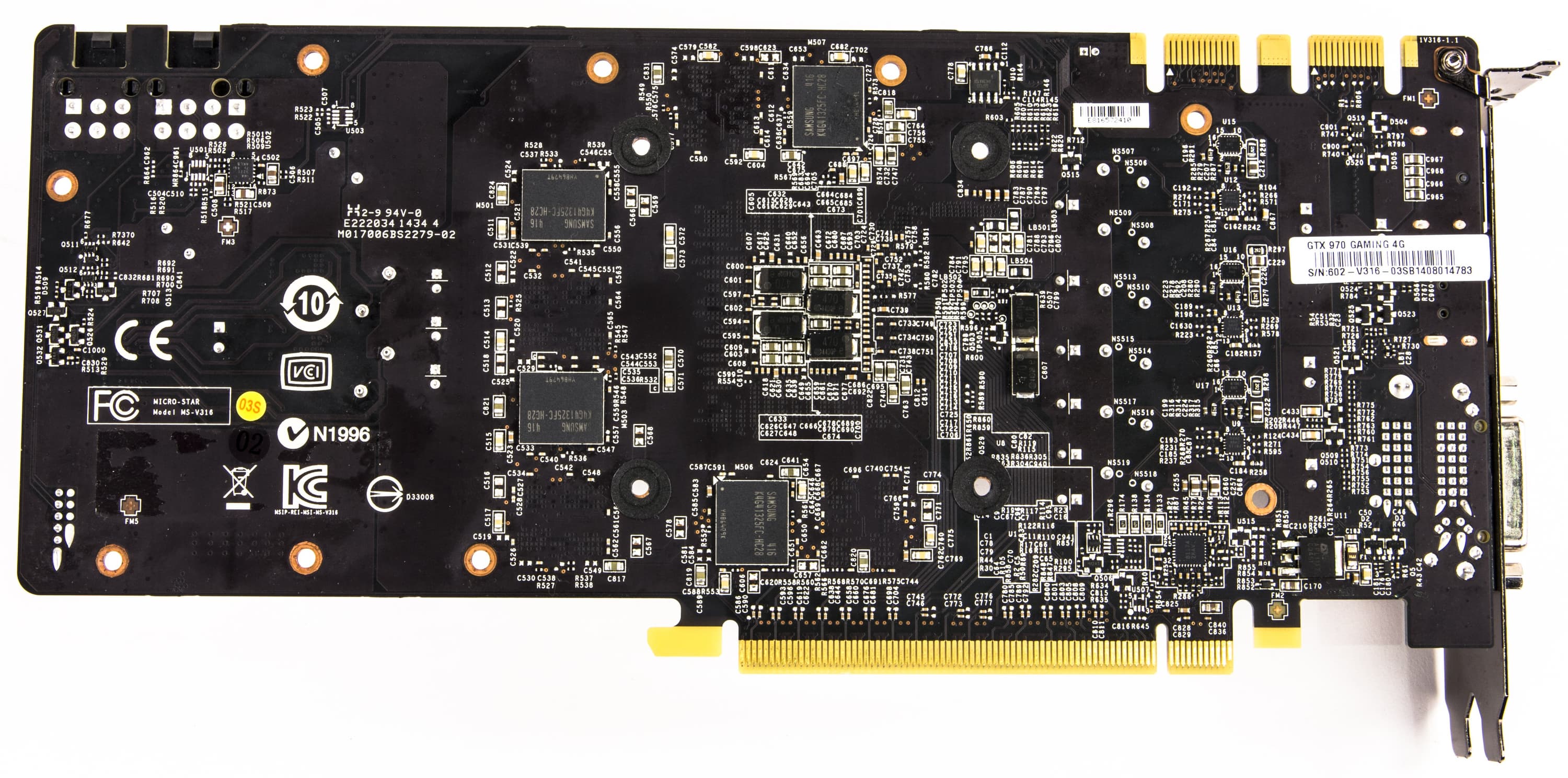 PCB кардинально переработана, включая даже расположение микросхем памяти. Схема питания стала 8-фазной (6+2). Это дает возможность получить тонкую настройку вольтажа по ядру и по памяти, особенно это касается разгонных возможностей с помощью фирменной утилиты Afterburner. Отличительной чертой серии MSI Gaming является применение дроссельных катушек SFC (Super Ferrite Choke), которые входят в состав модулей питания памяти и GPU. По сравнению с традиционными дросселями SFC обладают более высокой эффективностью и стабильностью работы при повышении температуры. Они могут показывать на 30% более высокую эффективность по сравнению с обыкновенными дросселями и позволяют автоматически переключаться между режимом высокой производительности и режимом высокой эффективности в зависимости от текущей нагрузки, что существенно помогает при оверклокинге.