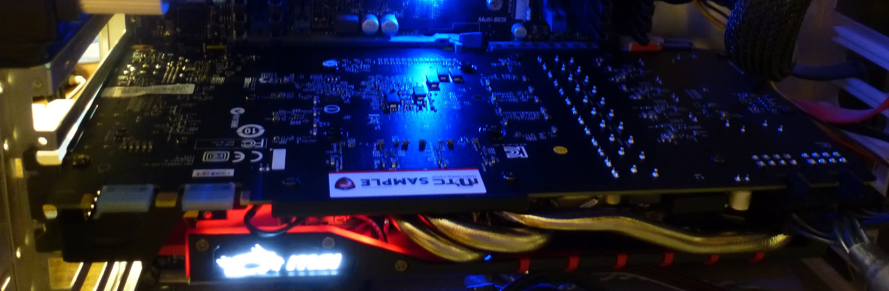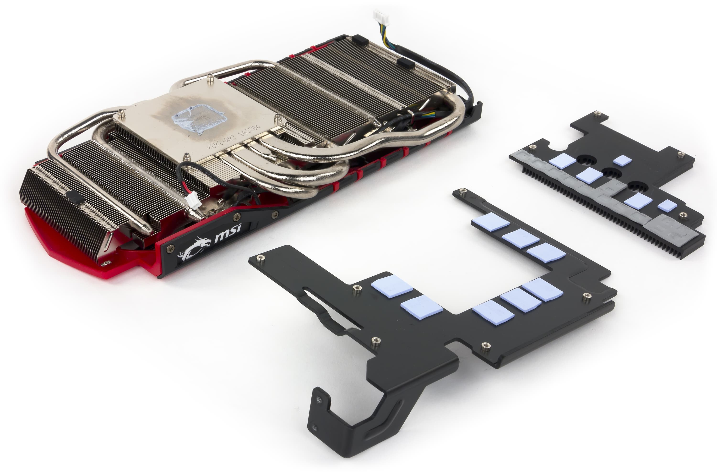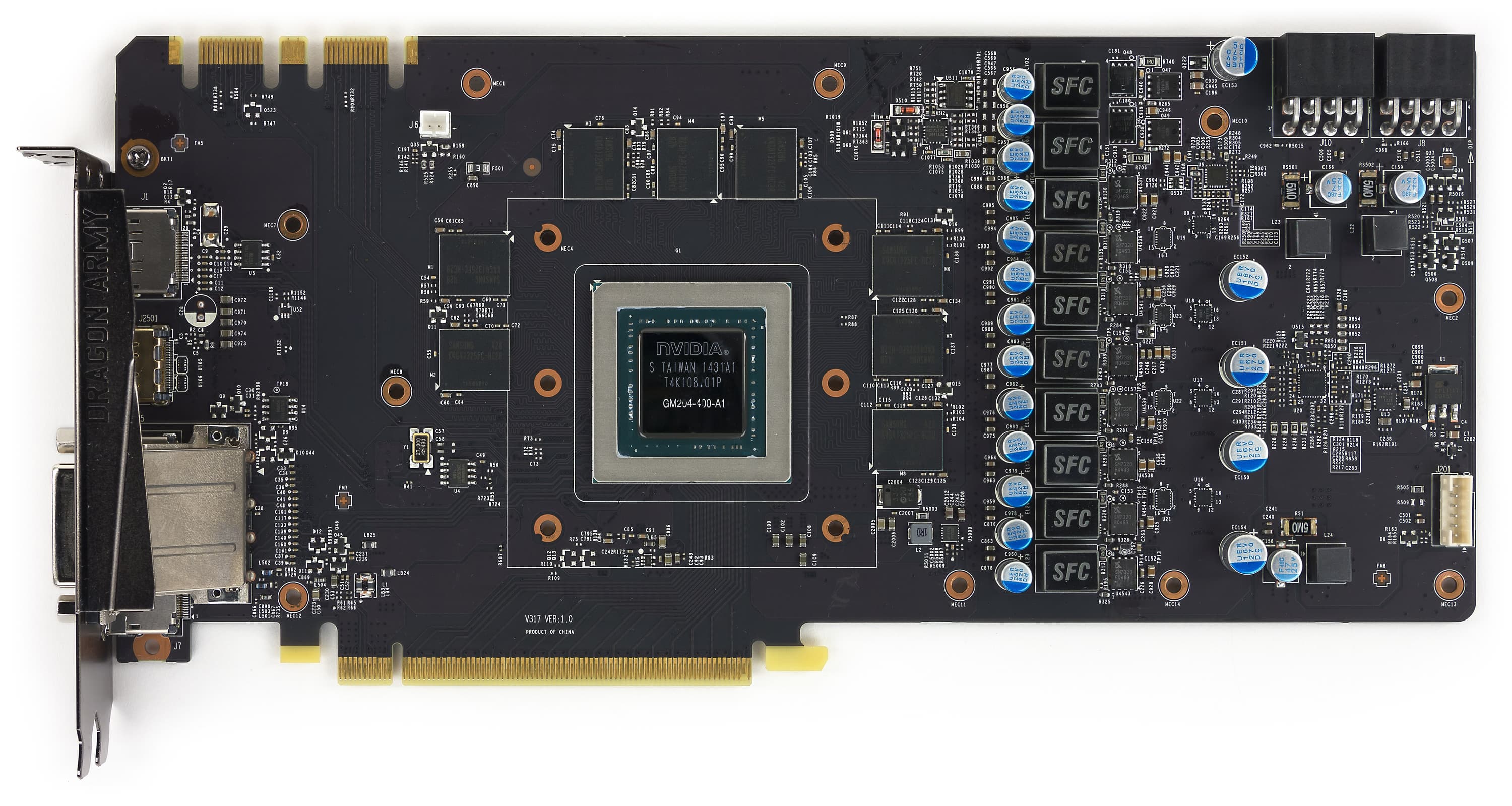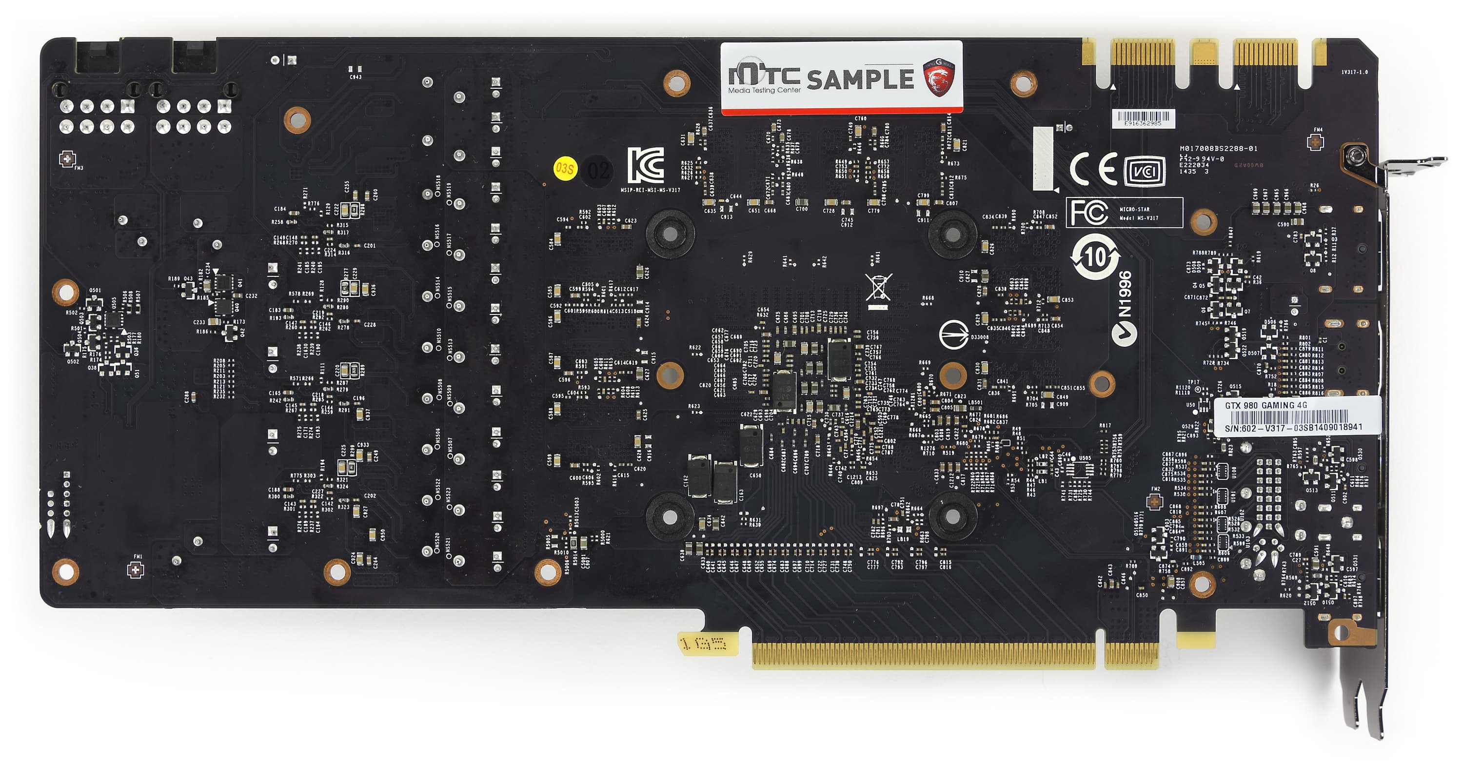 PCB значительно переработана. По сути, из эталонного дизайна сохранилось только расположение микросхем памяти относительно ядра. Все остальное — наработки инженеров MSI. Прежде всего это касается силового блока: схема питания стала 10-фазной (8+2), что позволяет реализовать очень тонкую настройку вольтажа по ядру и по памяти, особенно это касается разгонных возможностей с помощью фирменной утилиты Afterburner. Отличительной чертой продукта MSI является применение дроссельных катушек SFC (Super Ferrite Choke), которые входят в состав модулей питания памяти и GPU. По сравнению с традиционными дросселями SFC обладают более высокой эффективностью и стабильностью работы при повышении температуры. Они могут показывать на 30% более высокую эффективность по сравнению с обыкновенными дросселями и позволяют автоматически переключаться между режимом высокой производительности и режимом высокой эффективности в зависимости от текущей нагрузки, что существенно помогает при оверклокинге.