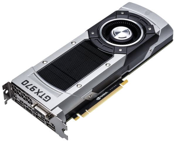 Geforce GTX 970 же, в свою очередь, основана на том же GPU, и поддерживает ровно те же технологии, что и старшее решение: MFAA, DSR, VXGI и др., но урезан по производительности. Так, в видеочипе остались активными лишь 13 блоков SMM и 1664 вычислительных ядер CUDA и 104 блока TMU. Естественно, что и частота работы GPU в этом варианте понижена до 1050 МГц базовой и 1178 МГц турбо-частоты. А вот подсистему памяти не тронули вовсе. Никаких урезаний тут нет, модель снабжена теми же 4 ГБ GDDR5-памяти, работающими на частоте в 7 ГГц по 256-битной шине.