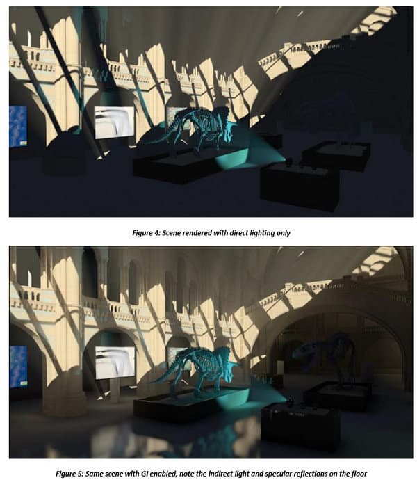 Полноценный расчет глобального освещения позволяет физически корректно просчитать освещение сцены, приблизиться к фотореалистичности и часто используется в кино и других системах 3D-графики, не требующих просчета в реальном времени. Увы, но процесс этот весьма трудозатратный и он оставался недостижимым для реального времени.