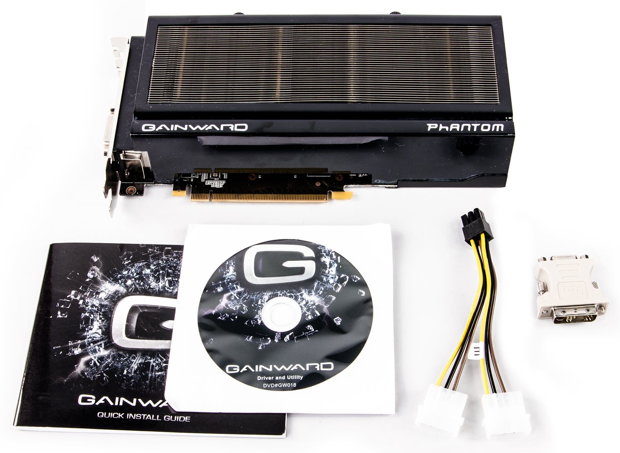 Базовый комплект поставки должен включать в себя руководство пользователя, диск с драйверами и утилитами. Мы видим базовый комплект плюс разветвитель питания, адаптер DVI-to-VGA. | ![]() |
