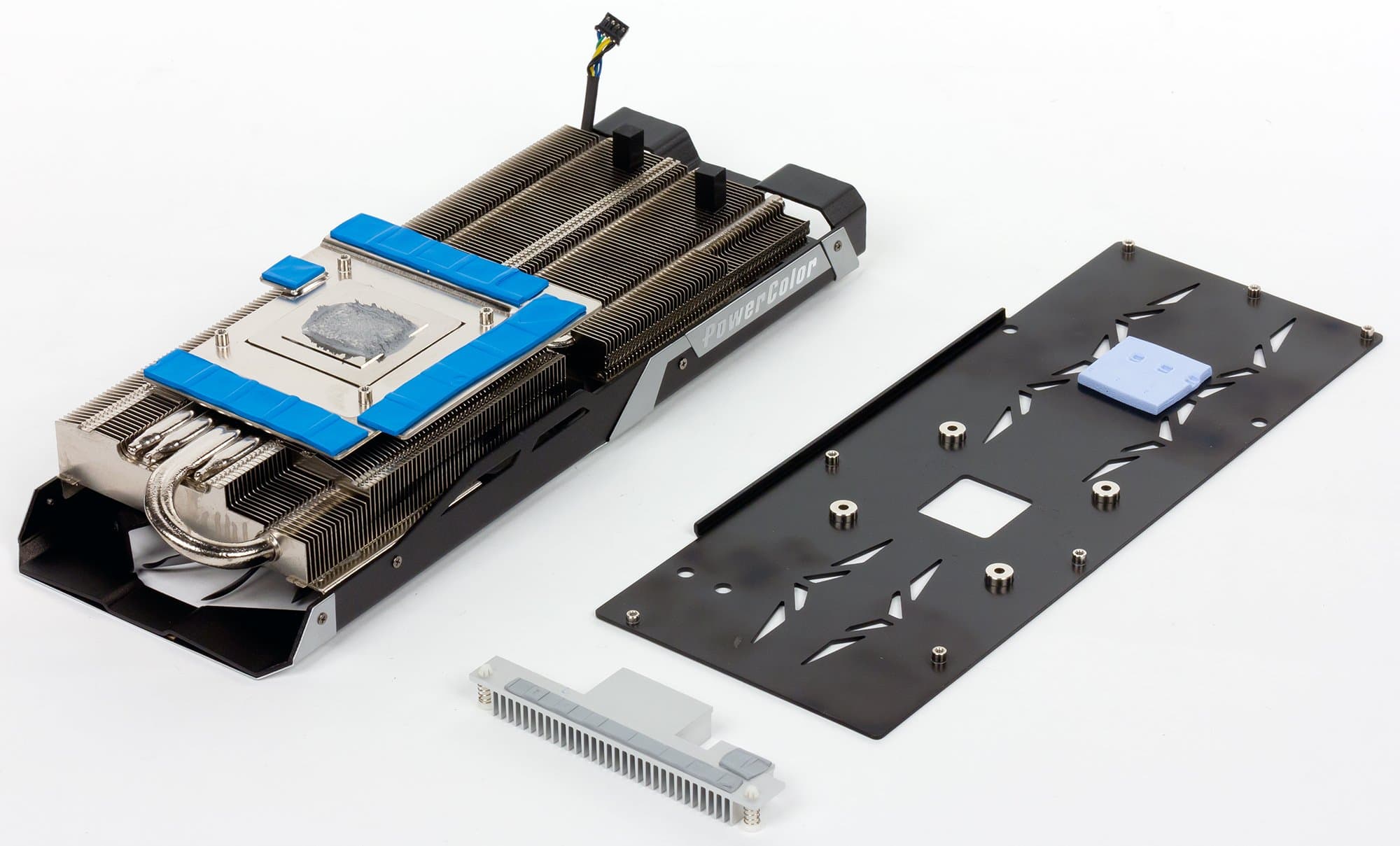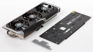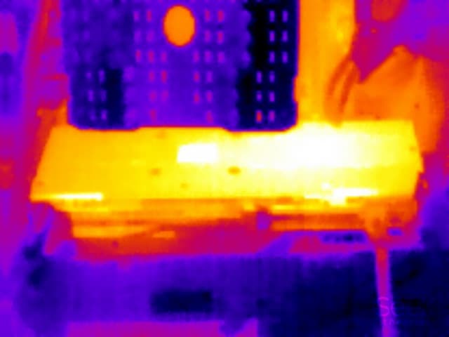Есть мнение, что GPU охлаждается не очень хорошо, так как температура платы сзади выше, чем показал датчик, встроенный в ядро. Она также выше, чем температура видимой сквозь отверстия части VRM. Снова вызывает сомнения полезность установки на заднюю поверхность пластины, которая имеет температуру гораздо ниже греющихся частей, а значит, по факту только ухудшает теплообмен. Однако это вряд ли влияет на шум СО, поскольку, как правило, частота вращения вентиляторов напрямую зависит от температуры ядра, получаемый с датчика из самого GPU.