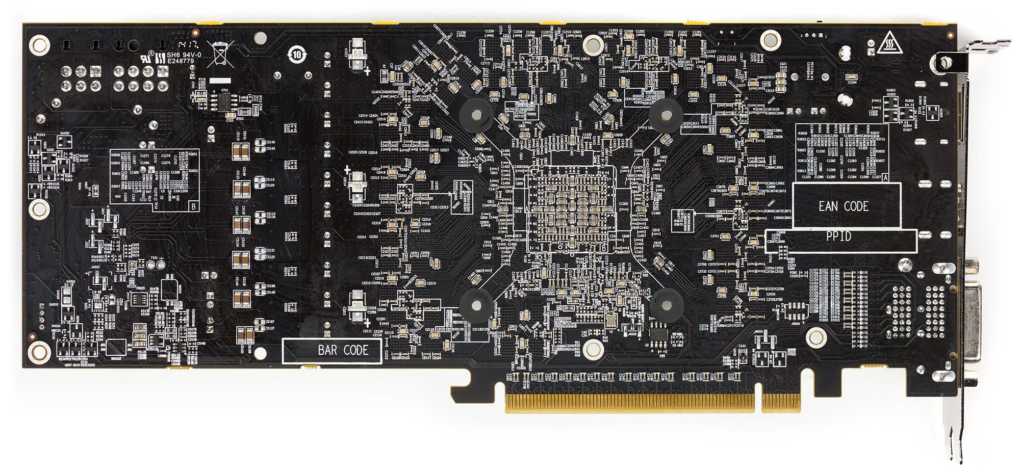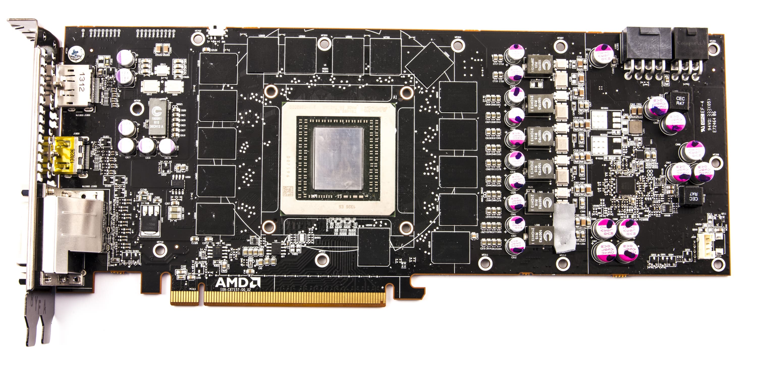 PCB несколько переработана инженерами TUL и немного отличается от референс-дизайна в области системы питания. Используется цифровой регулятор напряжения IOR 35678, обеспечивающий 6+1-фазную схему питания. Также набор видеовыходов изменен на более актуальный на сегодняшний день.