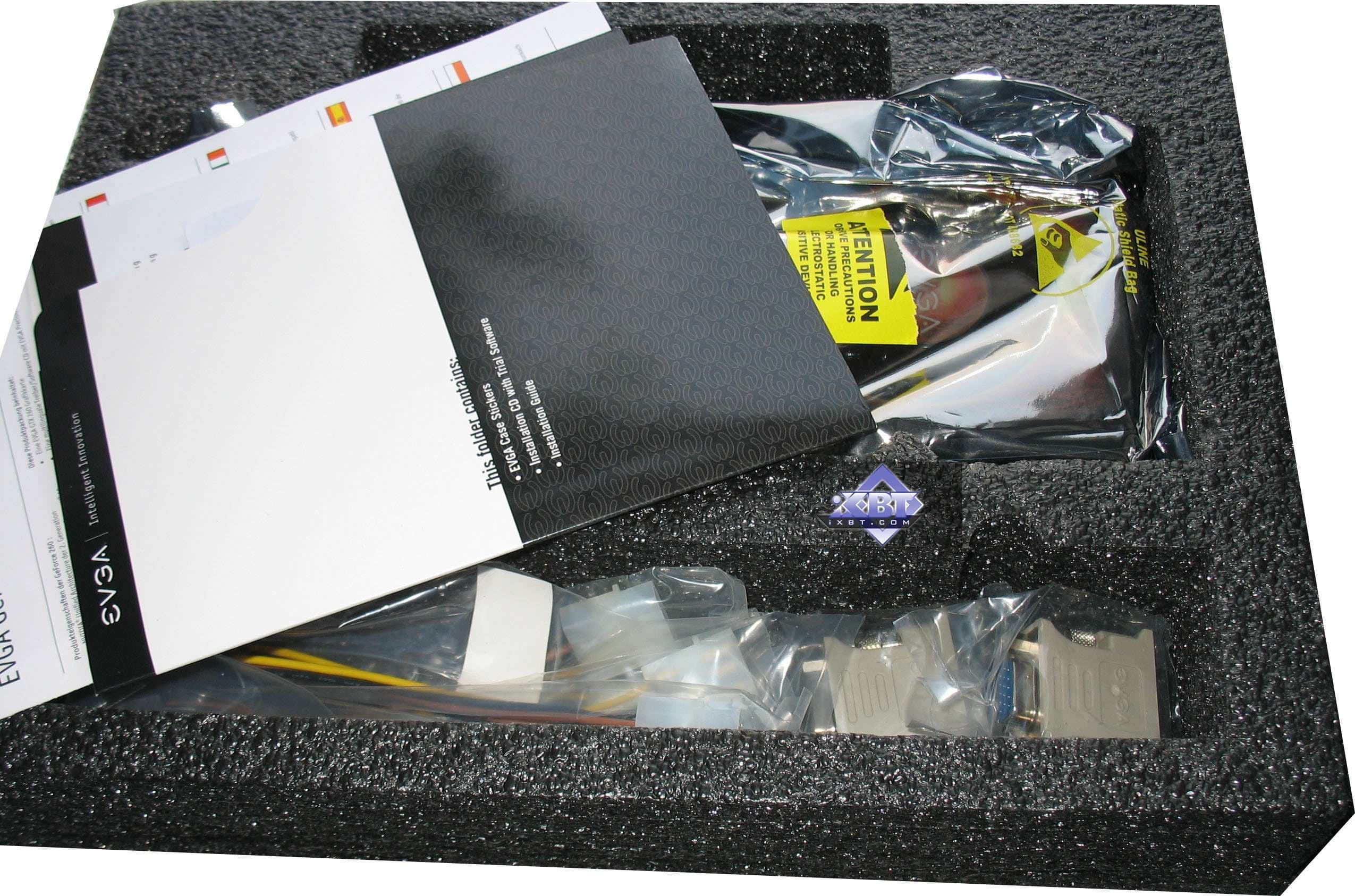 Далее, следуя логике вещей, коробку следует открыть и посмотреть, а чего еще в подарок к карте положил туда производитель (может чек на 1000 000 долларов, как 1000 000-му покупателю продукции EVGA).