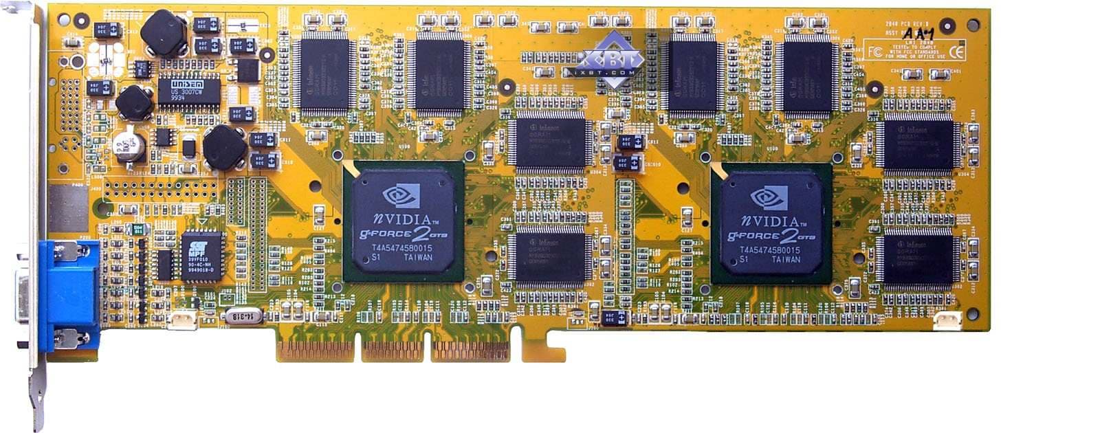 Помнится, еще в 2000 году мы мечтали о двухпроцессорных ускорителях, и даже мысленно представляли себе такое (на основе двух Geforce2 GTS, что на коллаже выше), поскольку в начале того года все с нетерпением ждали двухпроцессорного монстра от 3dfx, но при этом продвинутые пользователи понимали, что два Geforce2 будут явно быстрее. :-))