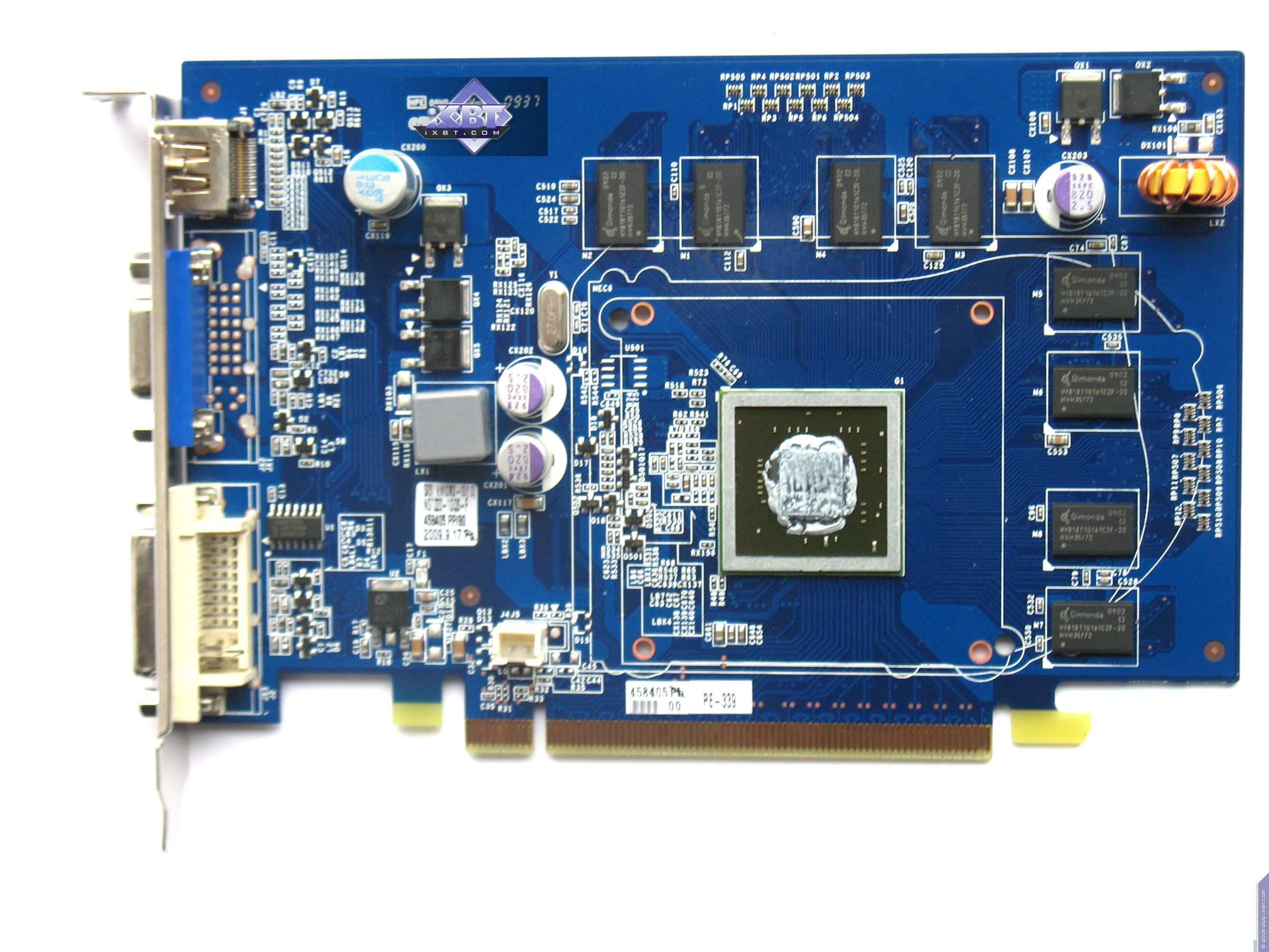 | Карта имеет 1024 МБ памяти GDDR3 SDRAM, размещенной в 8 микросхемах на лицевой стороне PCB Микросхемы памяти Hynix (DDR3). Микросхемы расчитаны на максимальную частоту работы в 800 (1600) МГц. | ![]() |