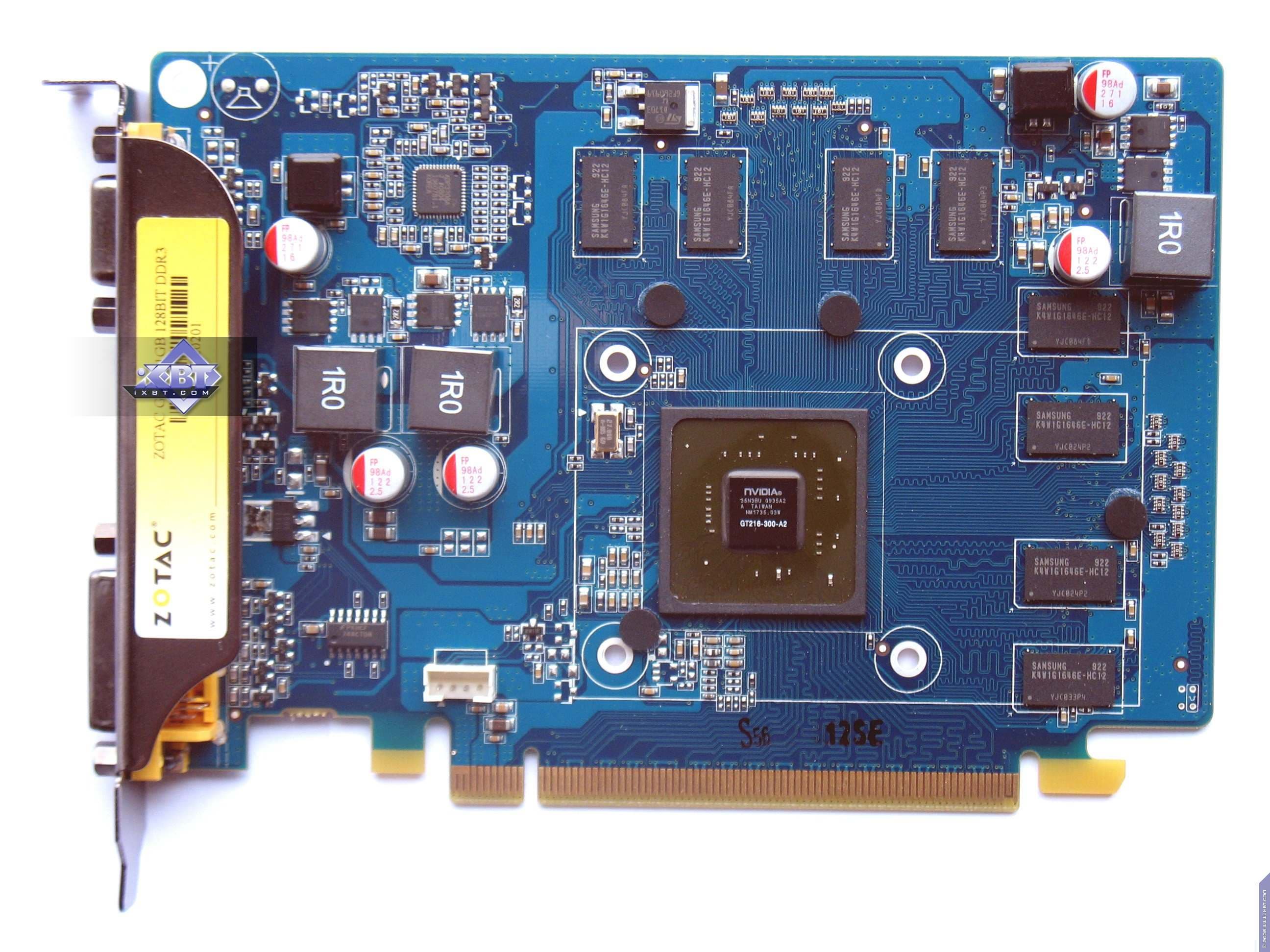 Очевидно, что все карты имеют довольно простой дизайн, связанный с 128-битной шиной обмена с памятью (дизайн подчас схож с 9500 GT). Точно также понятно, почему продукт от Gainward имеет в 2 раза меньше микросхем памяти, чтобы обеспечить объем в 512 мегабайт (а не 1024, как у остальных карт).