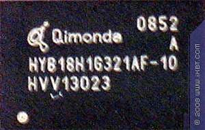 | Карта имеет 512 МБ памяти GDDR3 SDRAM, размещенной в 4 микросхемах на лицевой стороне PCB Микросхемы памяти Qimonda (GDDR3). Микросхемы расчитаны на максимальную частоту работы в 1000 (2000) МГц. | ![]() |