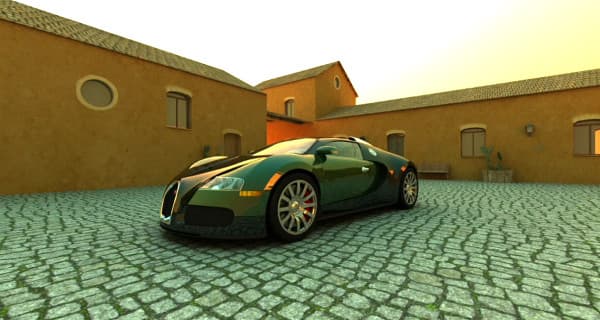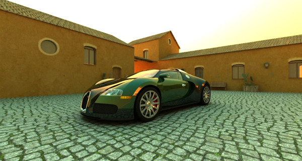 Такой подход позволяет быстро получать фотореалистичное изображение даже на слабеньком ноутбуке. В реальном времени на подобные расчёты не способны даже несколько GPU, но оно строится довольно быстро, дорисовываясь на лету. Вот, к примеру, другое освещение той же сцены: