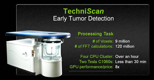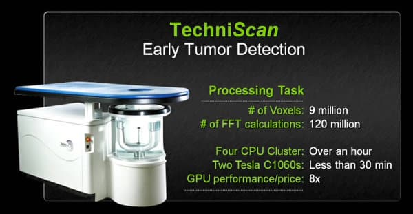 Даже не в скорости обработки данных основная выгода. При помощи новых устройств производства этой компании, можно определять больше случаев рака на ранних стадиях, диагностировать более мелкие опухоли, по сравнению с обычной маммографией. То есть, GPU могут реально помогать спасать человеческие жизни!