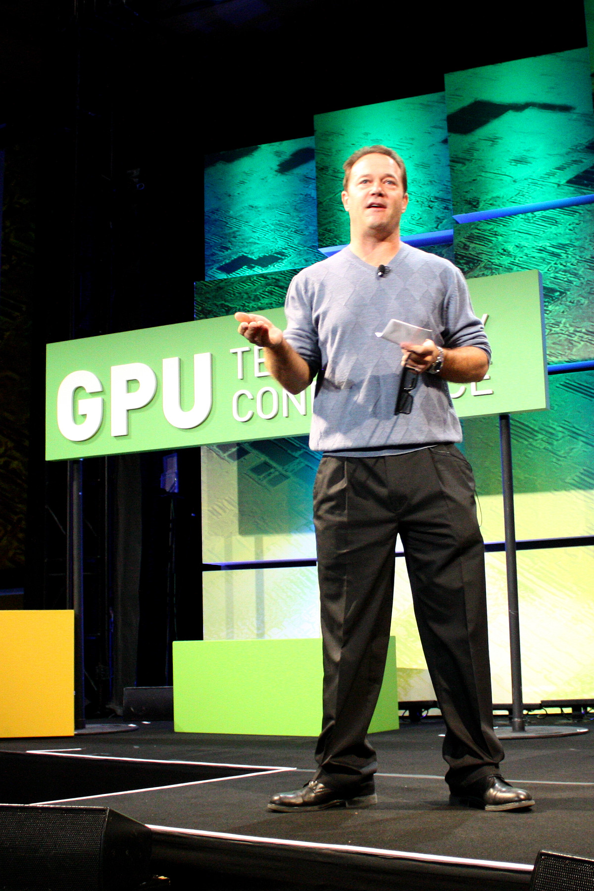 На сцену был приглашён Дэвид Робинсон (David Robinson), глава компании TechniScan, о которой мы уже упоминали в своей статье по CUDA. Он подробно рассказал о своей компании и том, чем они занимаются. Об ультразвуковом сканировании, о том, какие преимущества даёт применение GPU. Подробнее об их исследованиях можно узнать на сайте компании.