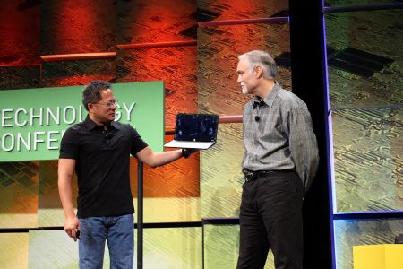 Естественно, далее было упомянуто мобильное решение Nvidia под названием ION. С поддержкой аппаратного ускорения для декодирования Flash-видео, которое появится в скором будущем в плеере Adobe, ролик проигрывался плавно. Прямо на нетбуке в руках Дженсена по Wi-Fi сети.