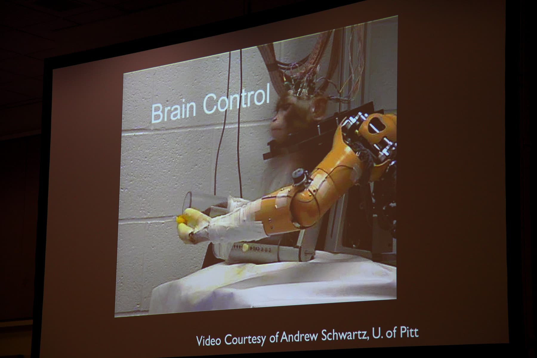 Тем не менее, лично я не пожалел о том, что сходил и послушал — хотя часть из показанного и рассказанного уже была известна ранее, добавилась и новая информация. А уж видеоролик с мартышкой, управляющей механической рукой — это вообще беспроигрышный вариант по привлечению внимания. Надо было поместить эту фотографию в аннотацию к выступлению.