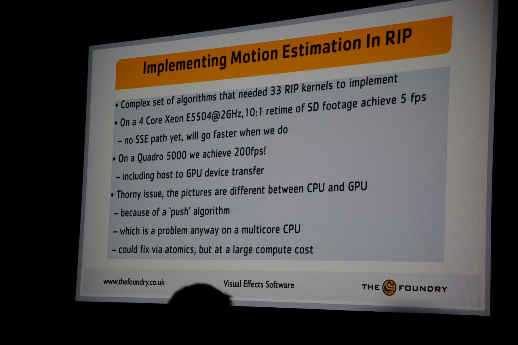 Ну и последним за второй день GTC 2010 будет выступление основателя компании The Foundry, занимающейся компьютерной графикой и визуальными эффектами в киноиндустрии. Интересно было услышать о том, какие преимущества в использовании GPU видит эта компания.