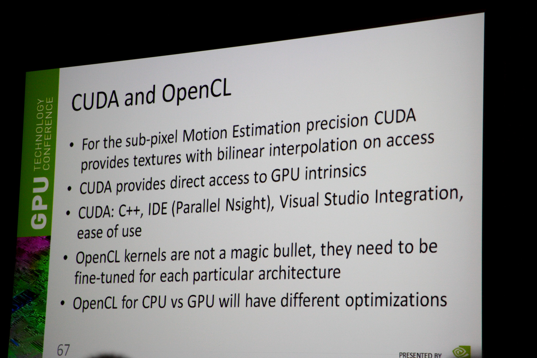 Заодно, в процессе выступления была анонсирована OpenCV для GPU — библиотека алгоритмов компьютерного зрения и обработки изображений, значительно упрощающая использование и многократно увеличивающая производительность обработки изображений в таких алгоритмах.