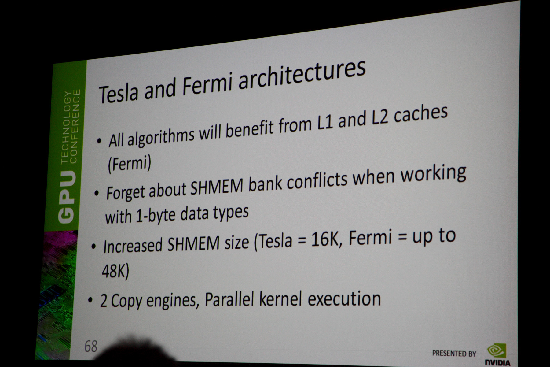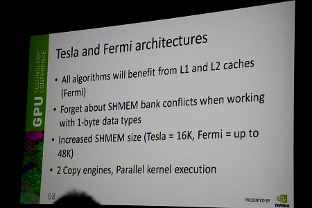Рассказал Антон и о возможностях специальной оптимизации алгоритмов видеокодирования для архитектур Tesla и Fermi. А также о многом другом, что просто выходит за рамки данного отчёта. Если вас интересует тема кодирования видео на GPU — скачайте соответствующие презентации с сайта Nvidia, не пожалеете.