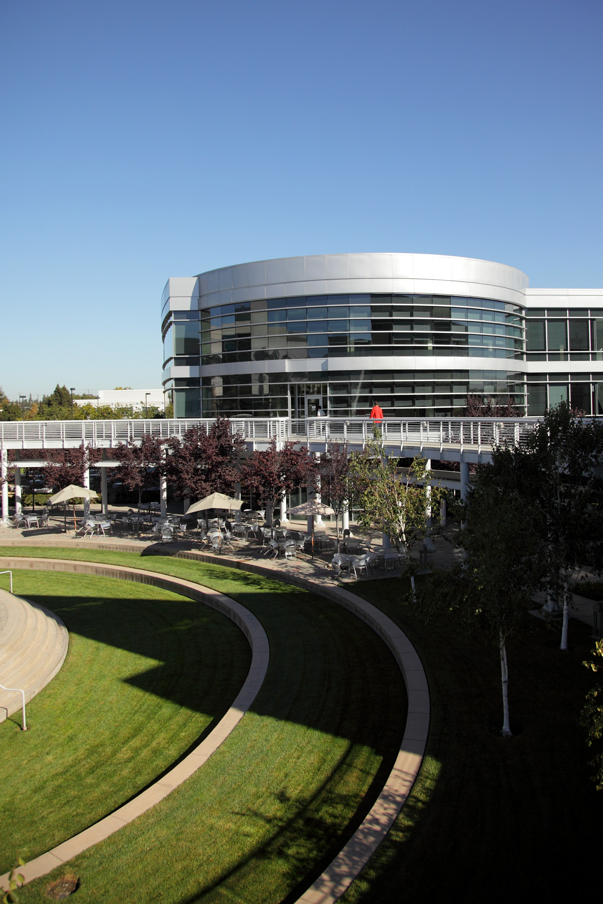 Вообще, площадь, занимаемая зданиями компании, довольно велика, и ходить от одного здания к другому приходилось довольно долго. У них тут даже своя автономная мини-электростанция есть, на всякий случай. И кафе для сотрудников и гостей, само собой, и симпатичный дворик для отдыха. В общем, всё как положено.