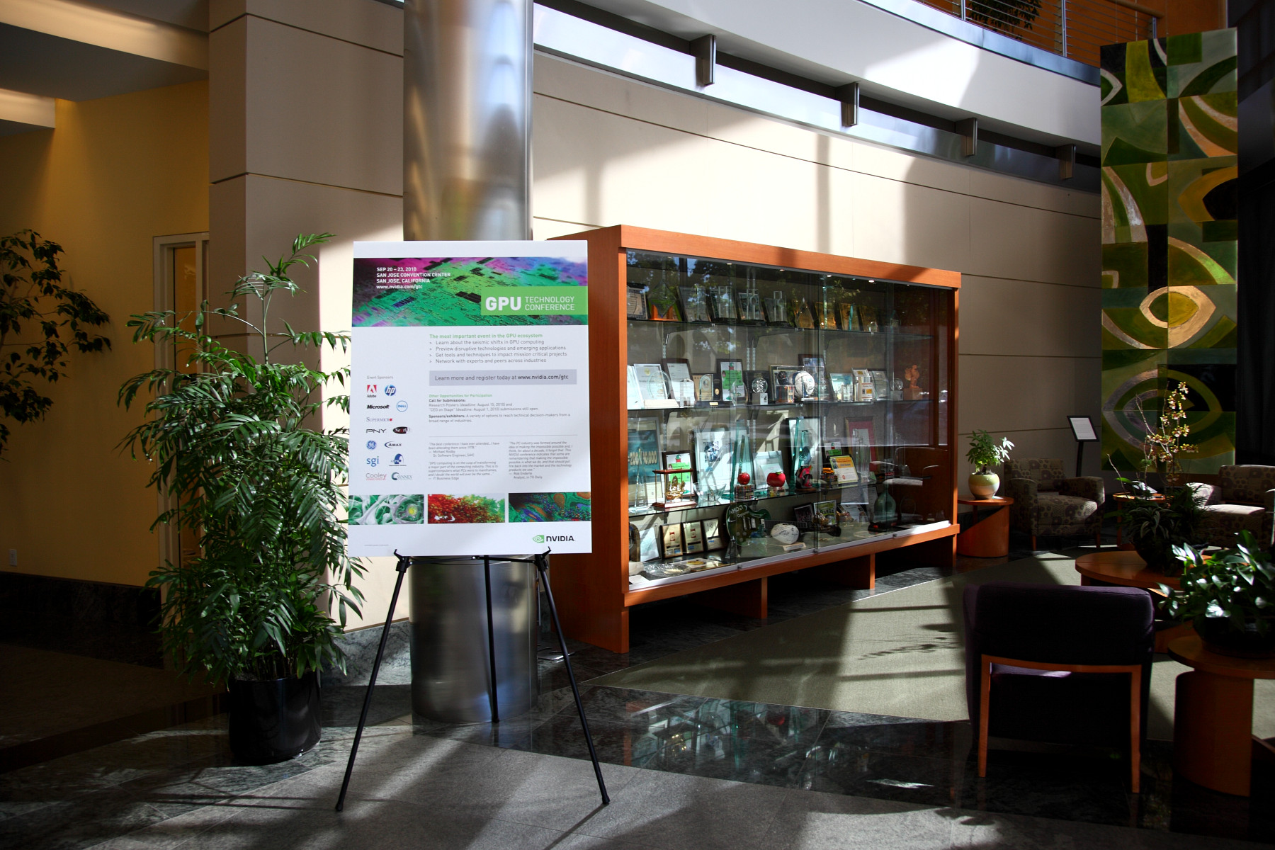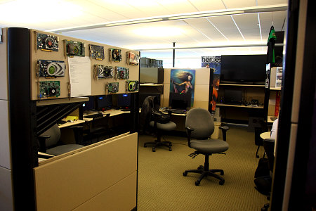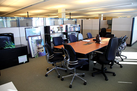 Как видите, всем посетителям офиса прямо с главного входа специальный плакат сразу же рассказывает о проведении конференции GTC 2010. К слову, подобные плакаты и наклейки я видел во многих комнатах и зданиях Nvidia — похоже, что в эти дни это действительно было главным событием для компании.