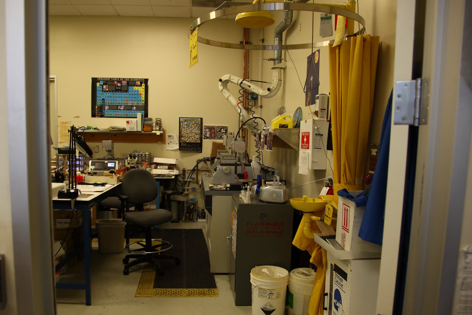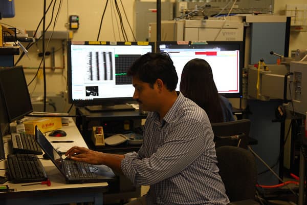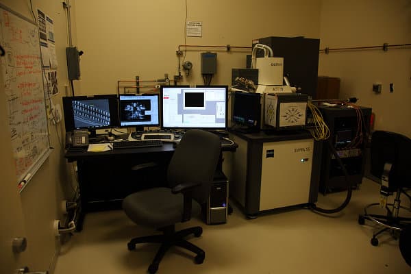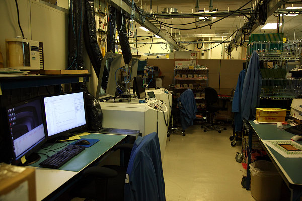 В этой лаборатории работает не очень много сотрудников, но их работа весьма важна, так как позволяет определить проблемы на поздних стадиях разработки. Они исследуют кристаллы, как стачивая их послойно (современные чипы имеют несколько кремниевых слоёв) вдоль, так и распиливая их перпендикулярно.