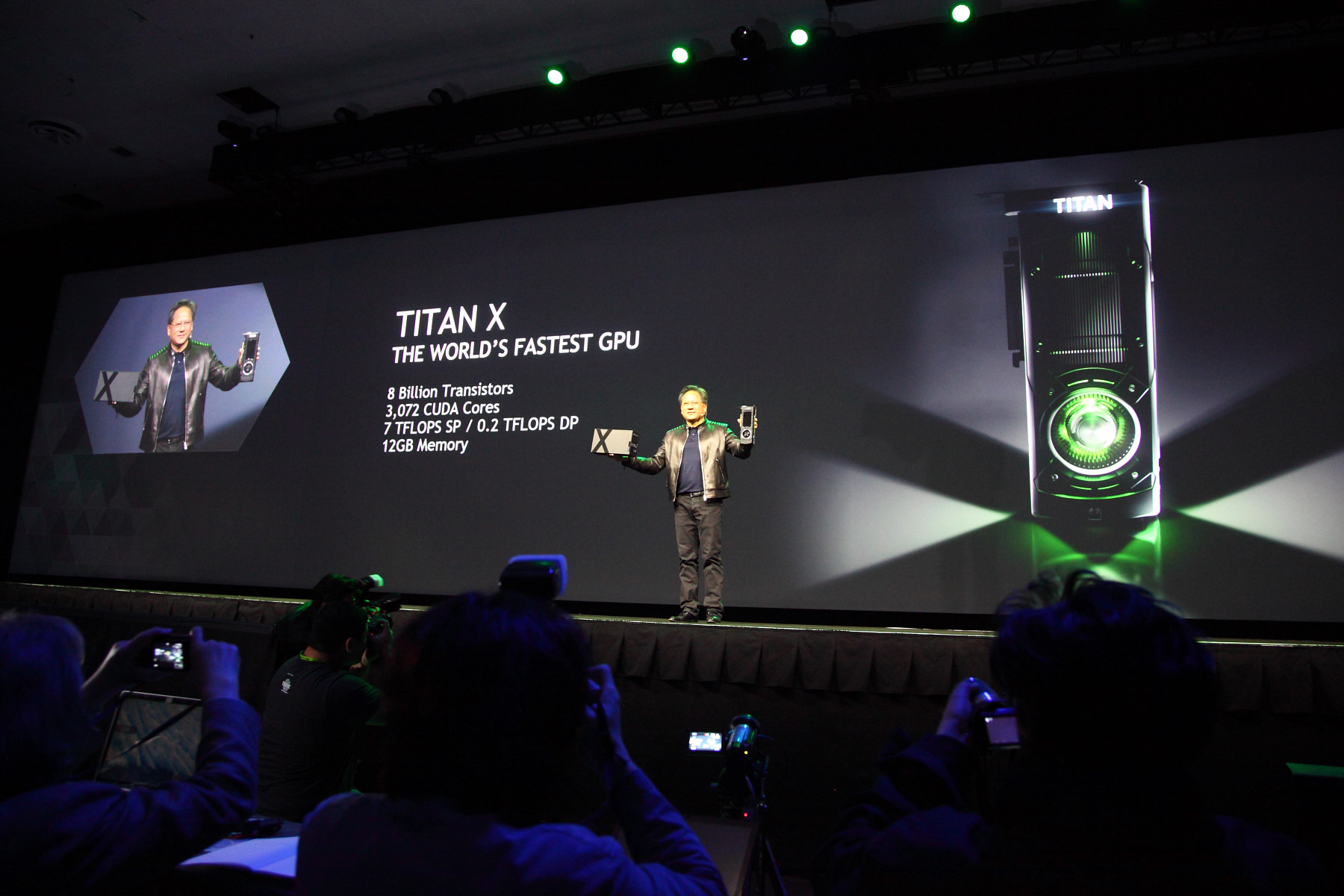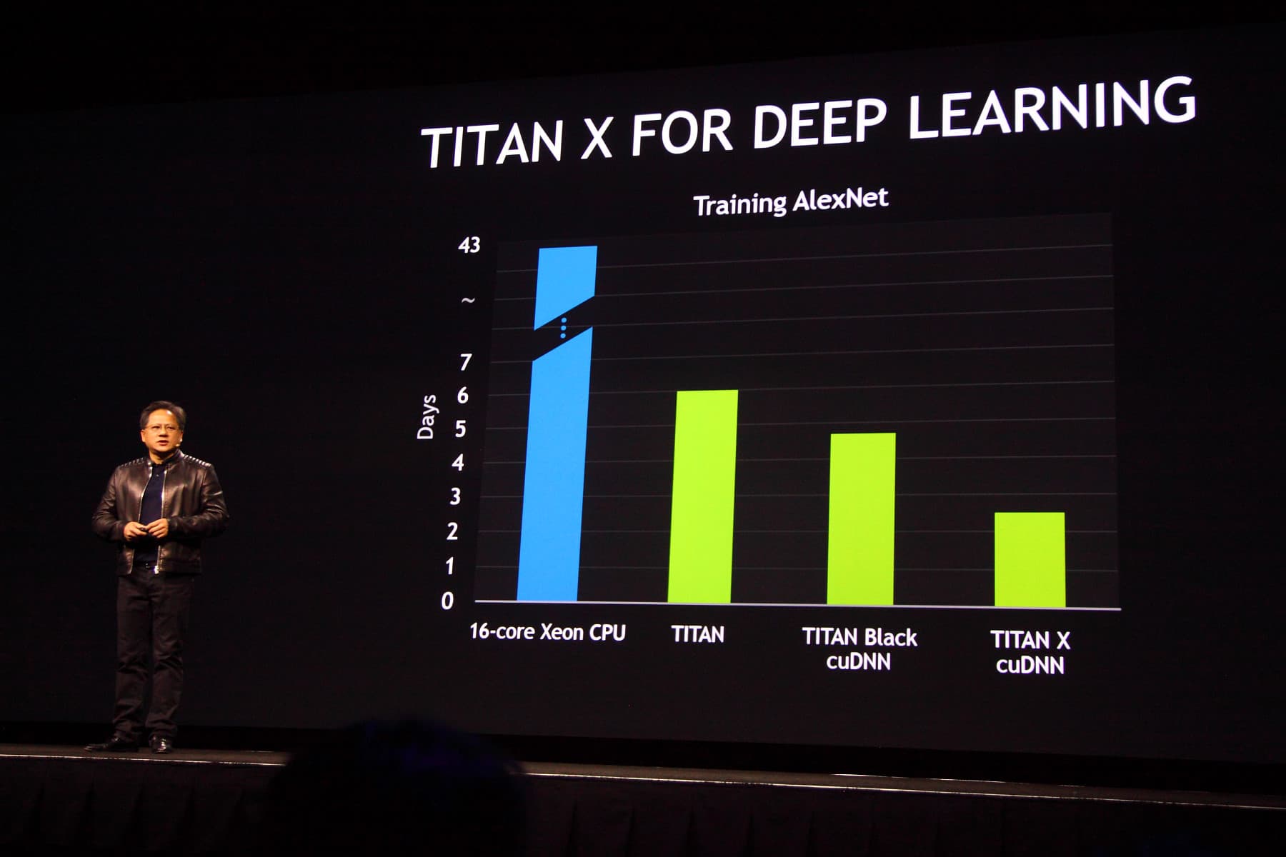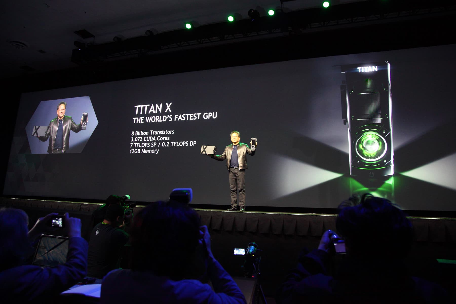 По ходу своего ключевого выступления, перед тысячами участников GTC, Дженсен представил несколько новых программных и аппаратных технологий, которые принесут лёгкость использования и высокую производительность в сферу глубокого машинного обучения. И началось всё с мощнейшего графического процессора Titan X.