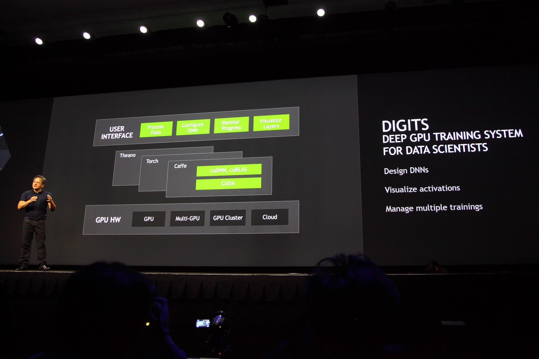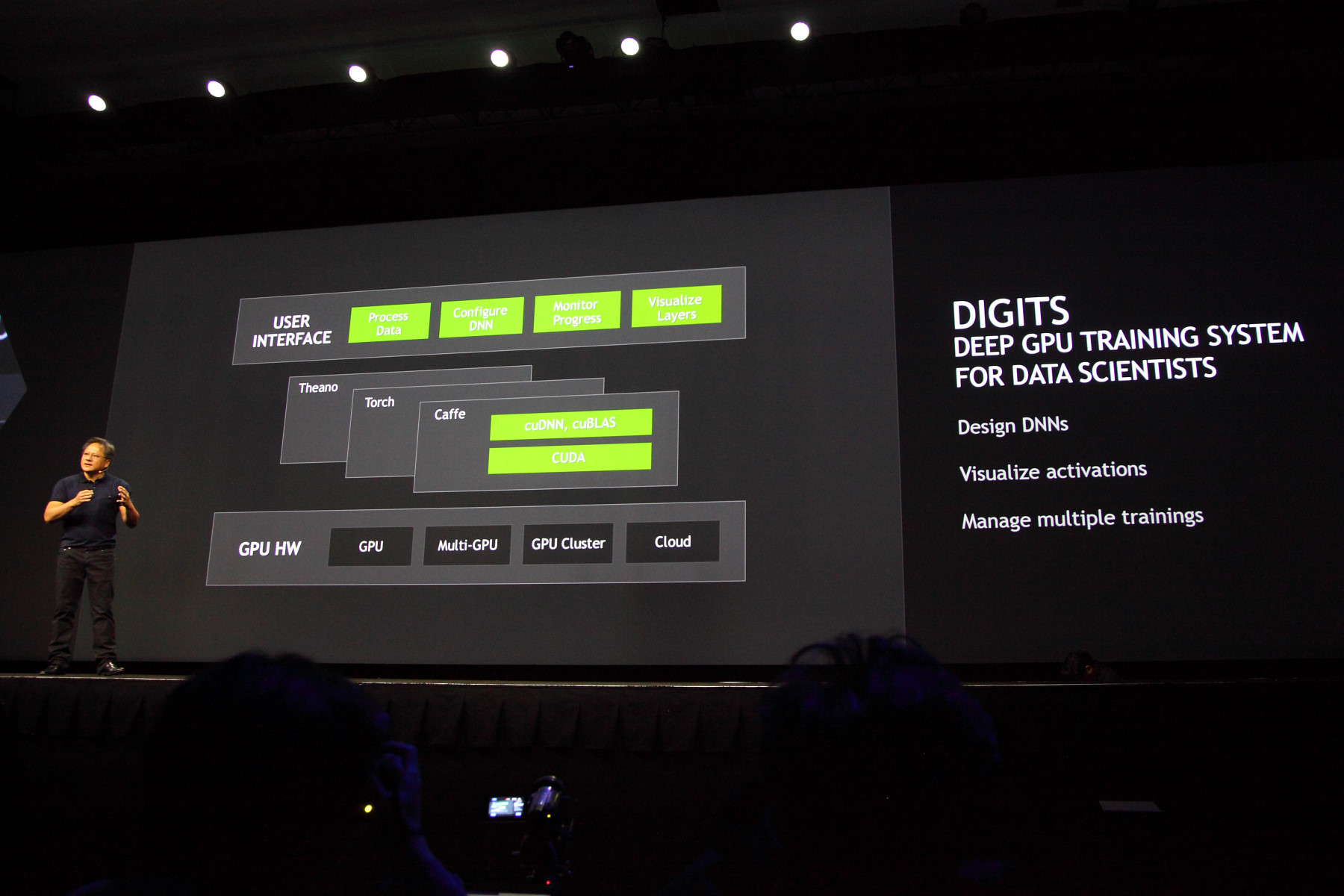 Представленная на конференции система тренировки глубокого обучения DIGITS, использующая графические процессоры Nvidia, даёт пользователям всё необходимое для того, чтобы построить глубокие нейросети максимально простым и быстрым способом.
