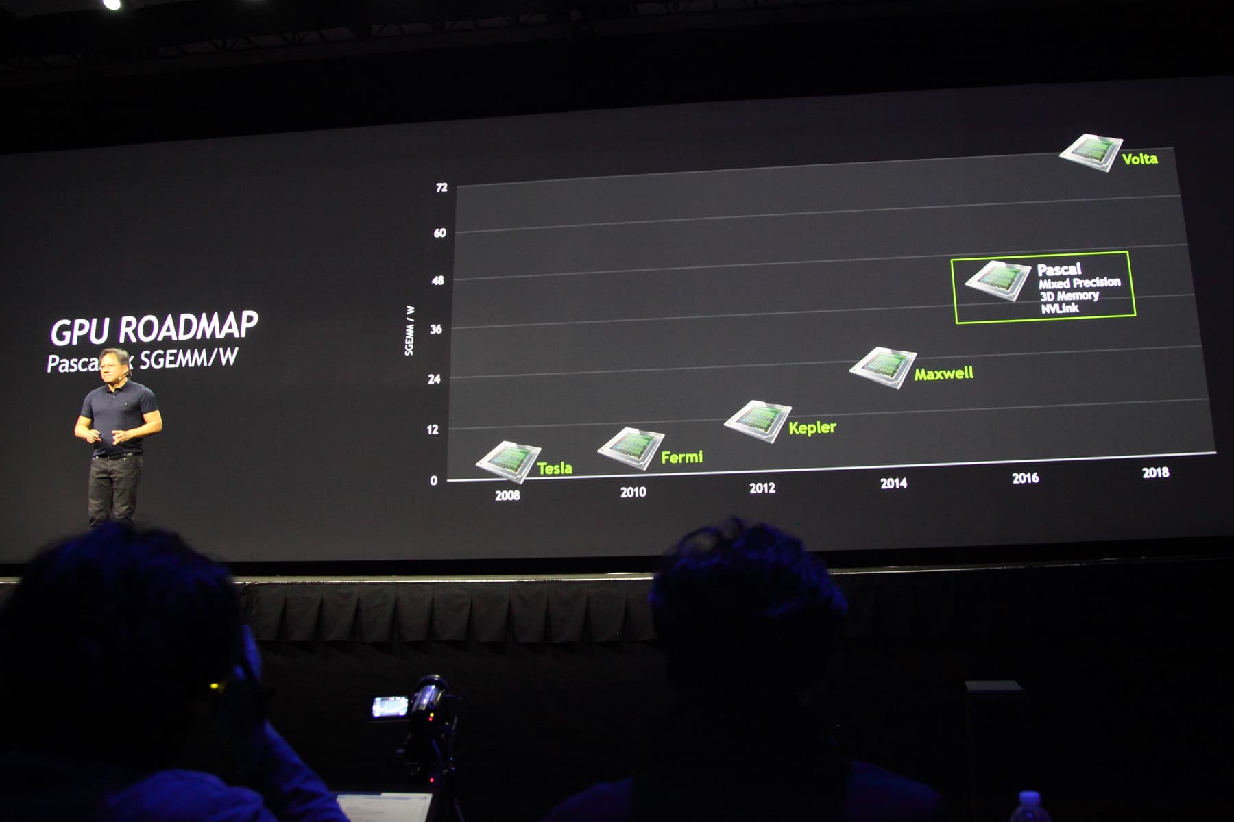 По ходу своего выступления Дженсен раскрыл некоторые детали Pascal и показал обновленный план по выпуску графических решений в ближайшие годы, выразив надежду, что новая архитектура после более чем трёхлетней разработки проявит себя с положительной стороны. Так как основной темой нынешней GTC является deep learning (использование самообучающихся нейросетей), то рассказали о том, как это сказалось на дизайне Pascal, анонсированном на прошлой конференции.