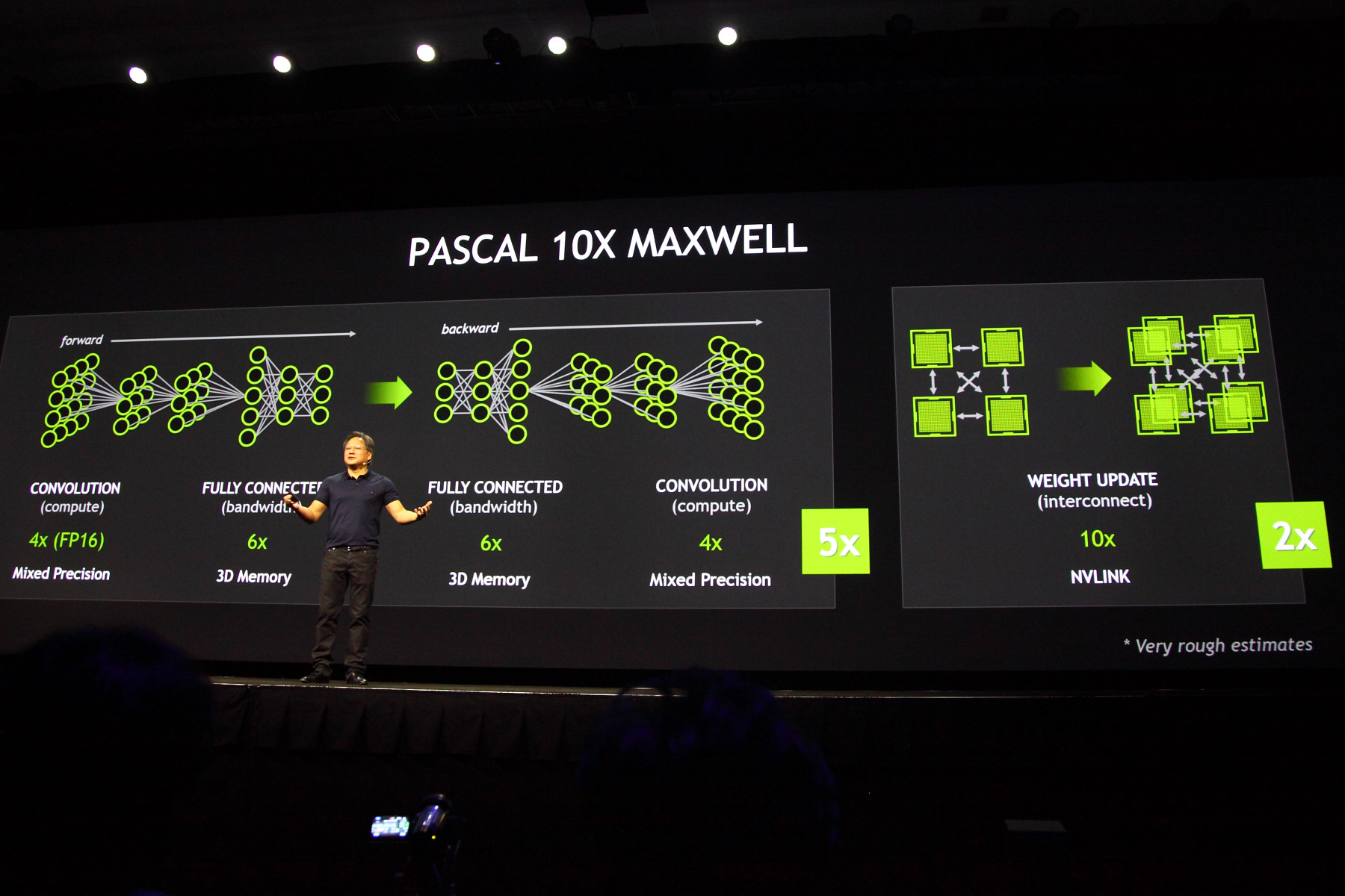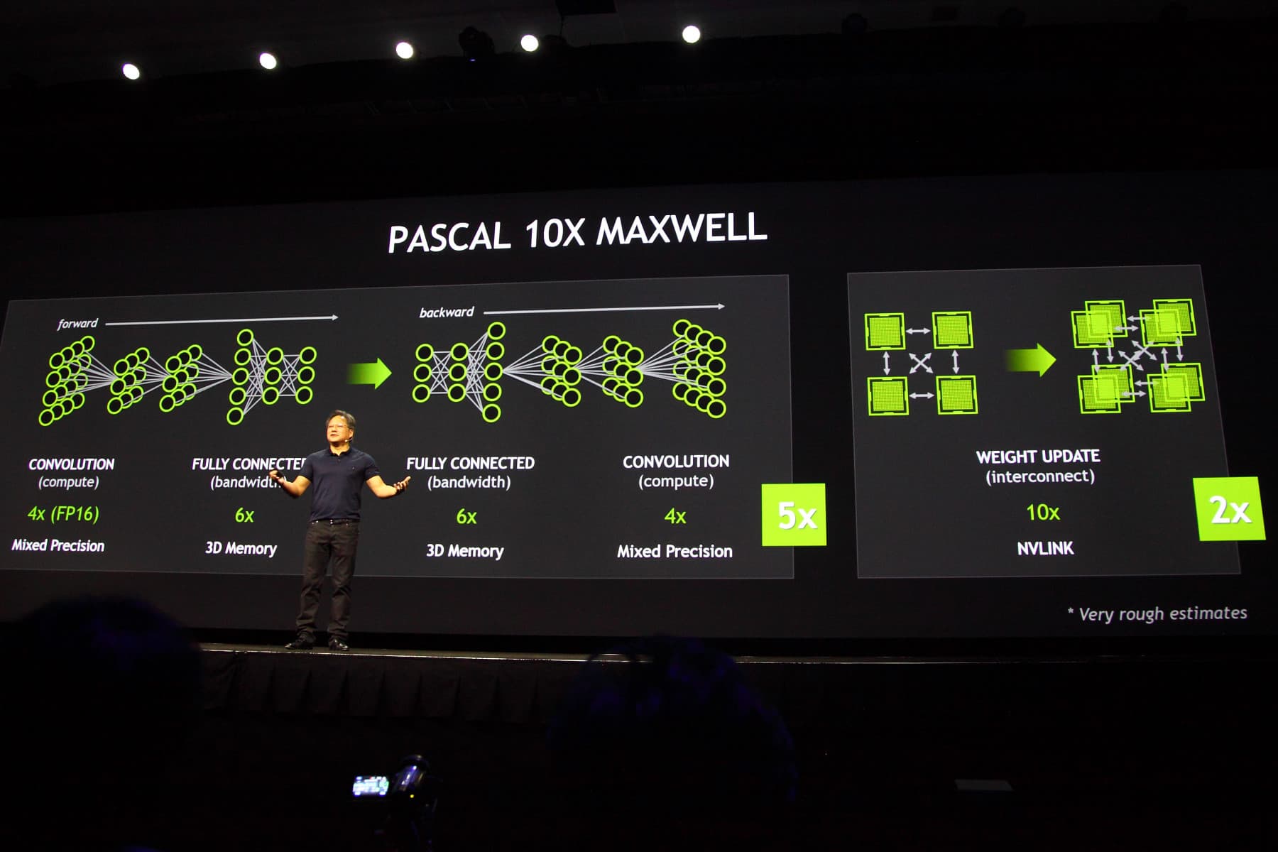 Графические решения архитектуры Pascal будут иметь три основных достоинства, связанных с подобным применением, что вызовет более точное и быстрое обучение сложных и глубоких нейросетей. Вместе с максимальным объёмом памяти в 32 гигабайта (что почти втрое больше, чем у анонсированного только что Titan X), выделяется ещё одна модификация — Pascal поддерживает вычисления смешанной точности. Также в GPU следующей архитектуры будет применяться 3D-память (stacked DRAM), которая в 5 раз быстрее в приложениях deep learning. Также необходимо помнить и о поддержке высокоскоростных межчиповых соединений NVLink, объединяющих два или более GPU. Всё вместе это в результате должно дать 10-кратный прирост в указанных задачах.