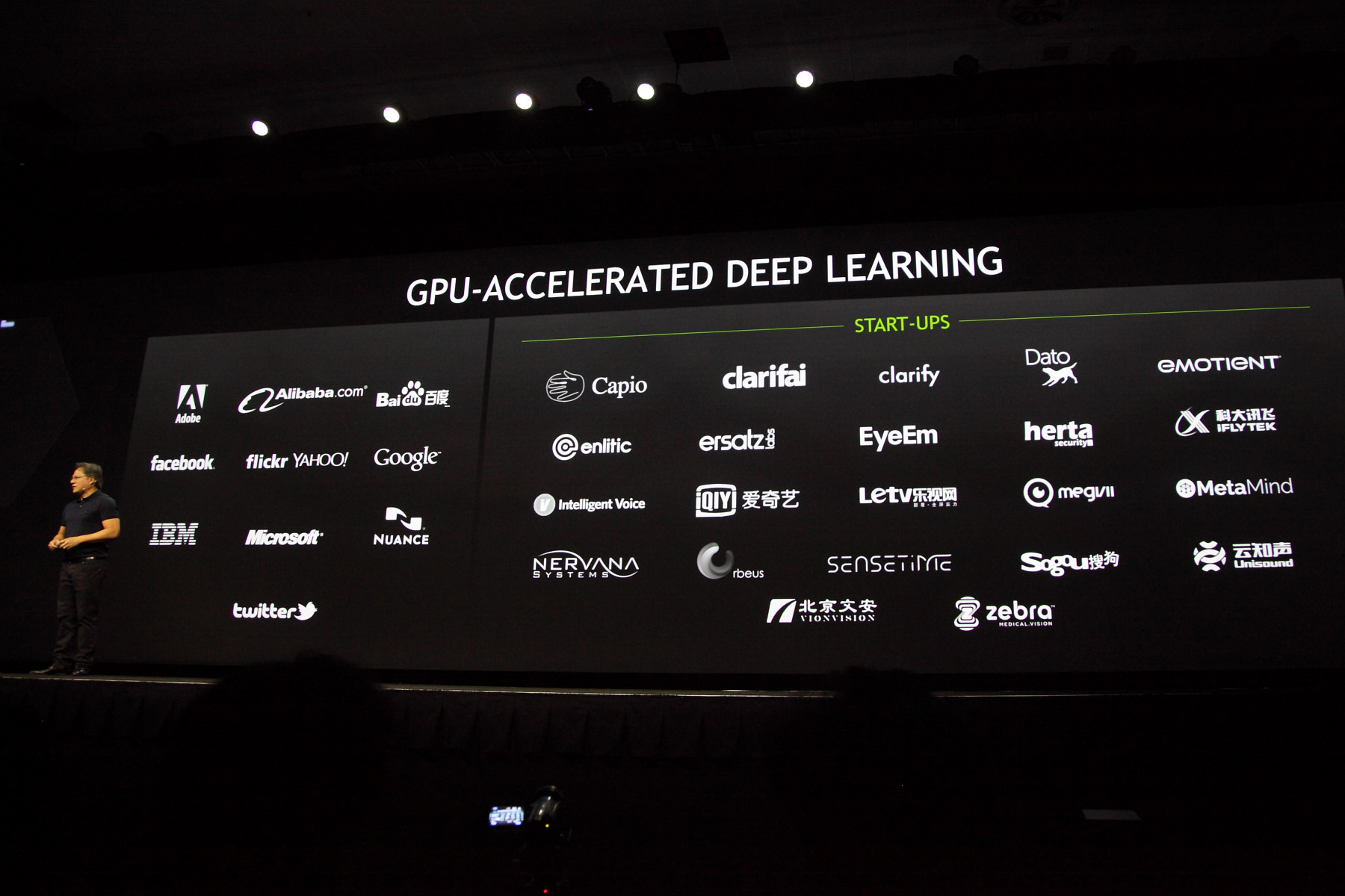 Это и понятно, ведь глубокое обучение весьма эффективно работает на графических процессорах и оно может открыть важные возможности для человечества — чем глубже будут обучены соответствующие нейросети, тем «умнее» станут машины. А уж применений этому методу масса, начиная с простого поиска визуальной информации и распознавания голоса, заканчивая автономными автомобилями и прочими элементами искусственного интеллекта — этому были посвящены все ключевые выступления: и президента Дженсена Хуанга, и представителей Google и Baidu.