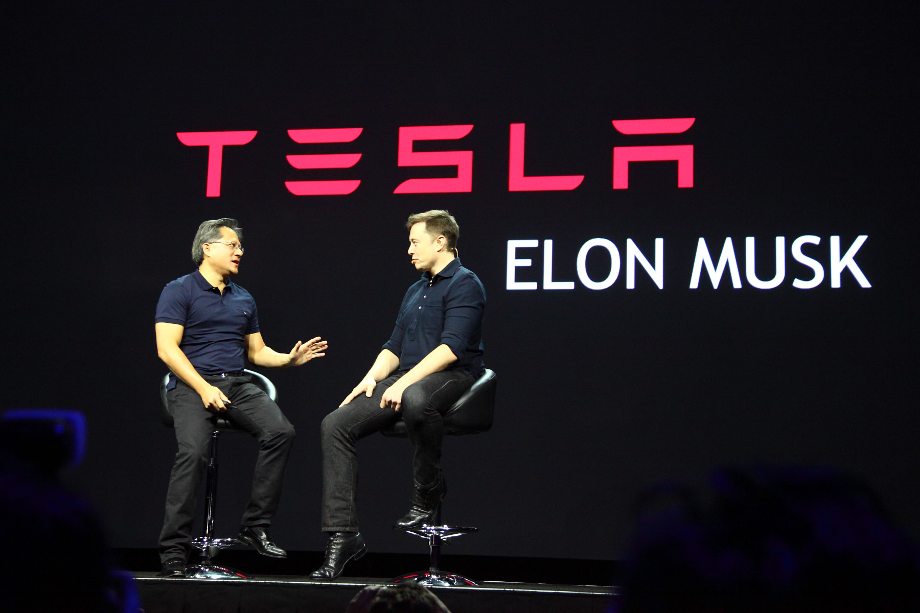 В рамках своего главного выступления на GTC, глава Nvidia Дженсен Хуанг прямо на сцене обсудил тему автономных автомобилей на дорогах с Илоном Маском (Elon Musk) — известным бизнесменом, основателем компаний PayPal, SpaceX и Tesla Motors. Последняя хорошо известна во всём мире, как автомобильная компания из Кремниевой долины, производящая одноимённые электромобили.