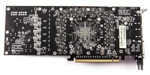 Ускоритель имеет следующий набор гнезд вывода: 2 DVI (совместимы с выводом на HDMI) и по одному DisplayPort и HDMI (суммарно можно подключить 3 приемника с HDMI). Напомним, что ускорители AMD достаточно давно обладают собственными звуковыми кодеками для вывода звука по HDMI. А R9 290X к тому же поддерживает программируемый движок TrueAudio, который, впрочем, пока трудно назвать актуальным, так как нужна поддержка со стороны разработчиков игр.
