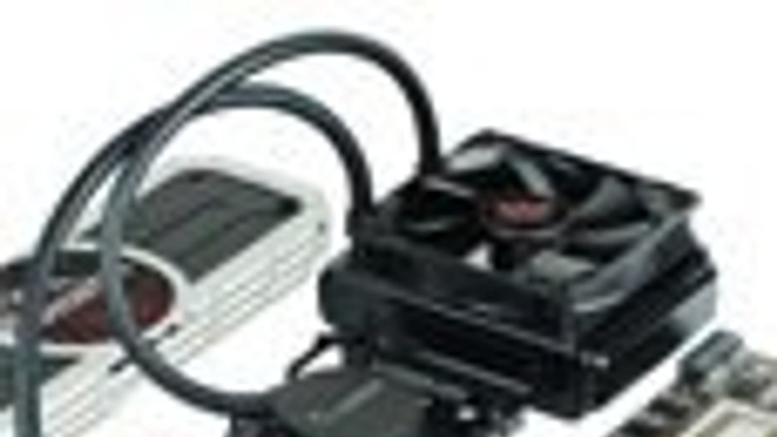 Вентилятор размерности 120 мм установлен на радиатор теплообменника так, чтобы прогонять воздух через радиатор, и рекомендуется установить его в корпусе таким образом, чтобы горячий воздух выходил из ПК наружу. Также рекомендуется использование дополнительных вентиляторов в корпусе ПК для охлаждения столь мощной системы с весьма горячим нравом, что совершенно неудивительно.