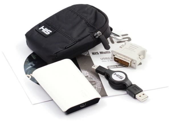 На этот раз комплект поставки богаче: USB-кабель фирменный и собирается в катушку, есть также адаптер DVI-VGA, и все это вместе с самим устройством может быть упаковано в симпатичный чехол на молнии.