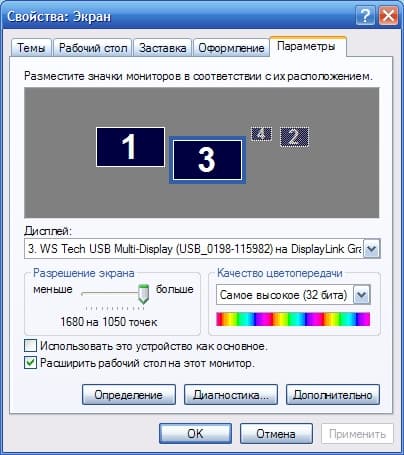 После установки необходимо перезагрузить компьютер, и дополнительные мониторы появятся в стандартном меню свойств экрана.