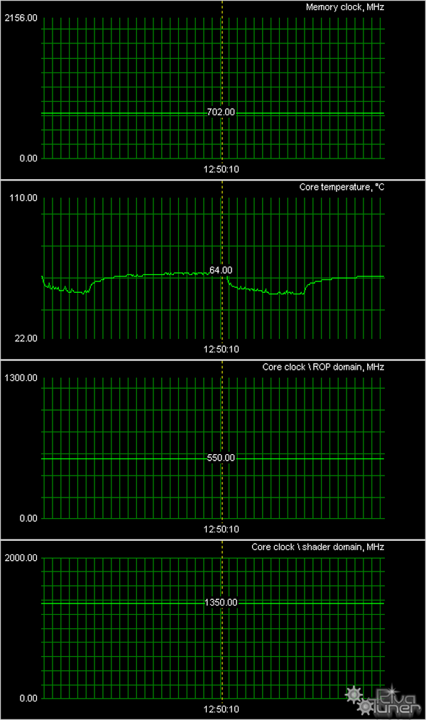 Мы провели исследование температурного режима с помощью утилиты RivaTuner (автор А.Николайчук AKA Unwinder) и получили следующие результаты: