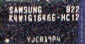 | Карта имеет 1024 МБ памяти SDDR3 SDRAM, размещенной в восьми микросхемах на лицевой стороне PCB. Микросхемы памяти Samsung (SDDR3). Микросхемы расчитаны на максимальную частоту работы в 800 (1600) МГц. | ![]() |