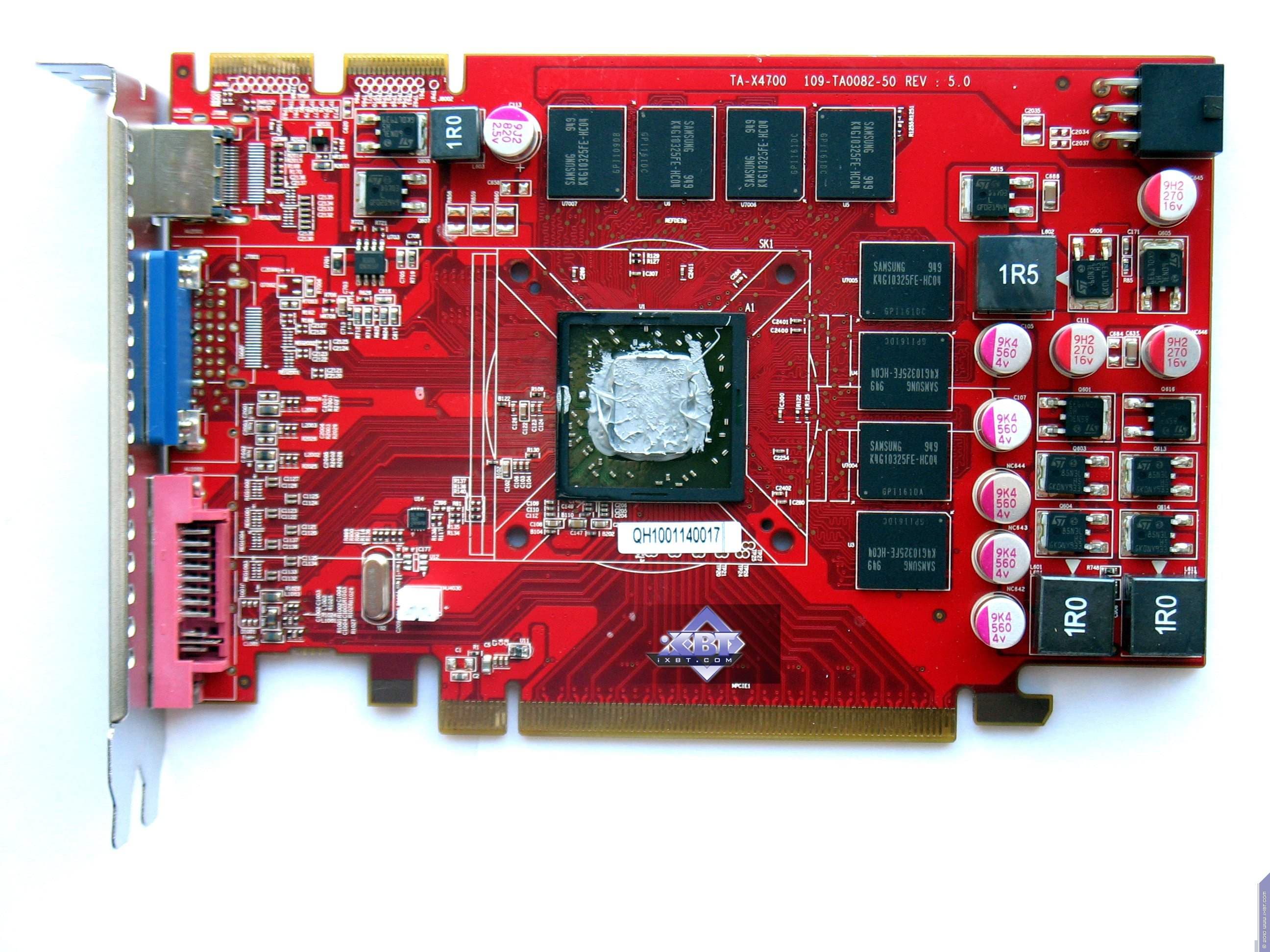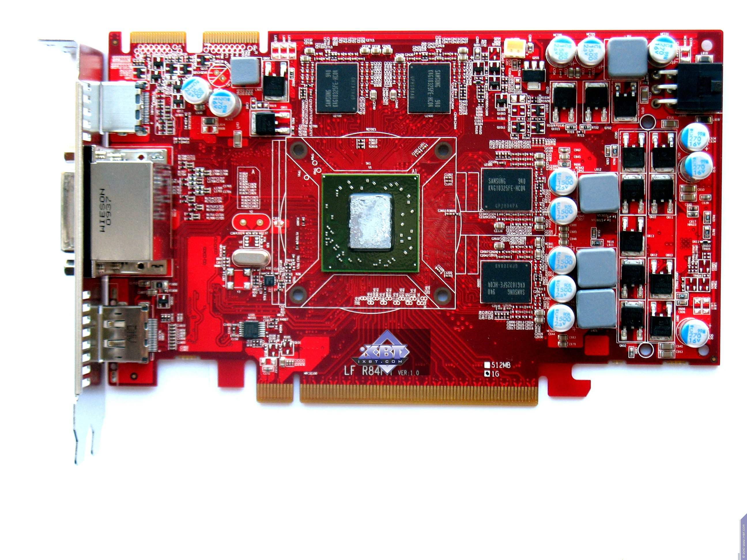 | Карта имеет 1024 МБ памяти GDDR5 DRAM, размещенной в восьми микросхемах на лицевой стороне PCB. Микросхемы памяти Samsung (GDDR5). Микросхемы расчитаны на максимальную частоту работы в 1250 (5000) МГц. | ![]() |