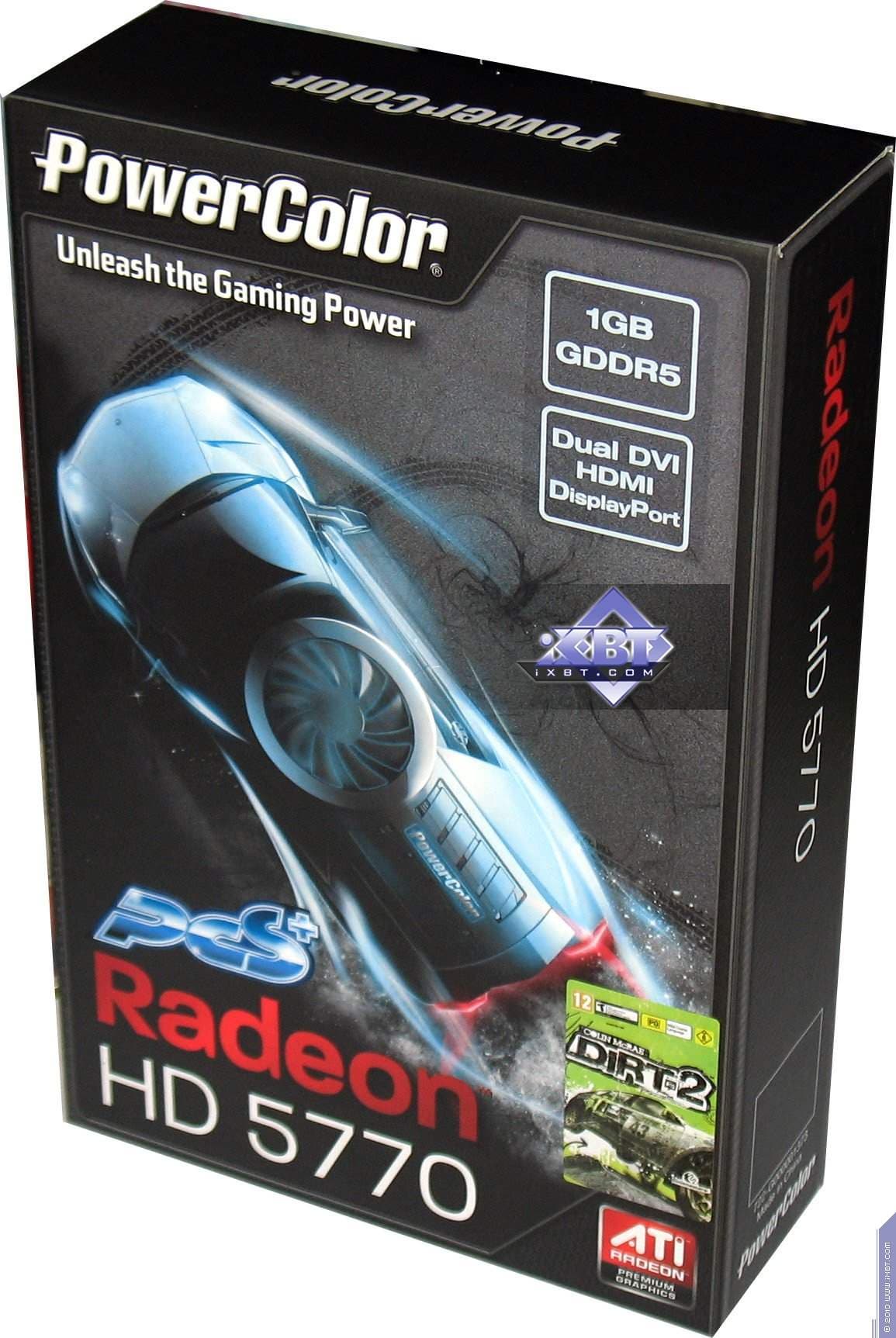 Powercolor Radeon HD 5770 PCS+ 1024MB PCI-E — аналогичный очень хороший продукт, однако упакован очень плохо, следует закрепить карту в коробке, чтобы избежать поломок в процессе перевозки. Вместе с тем карта имеет существенный плюс — повышенные частоты работы.
