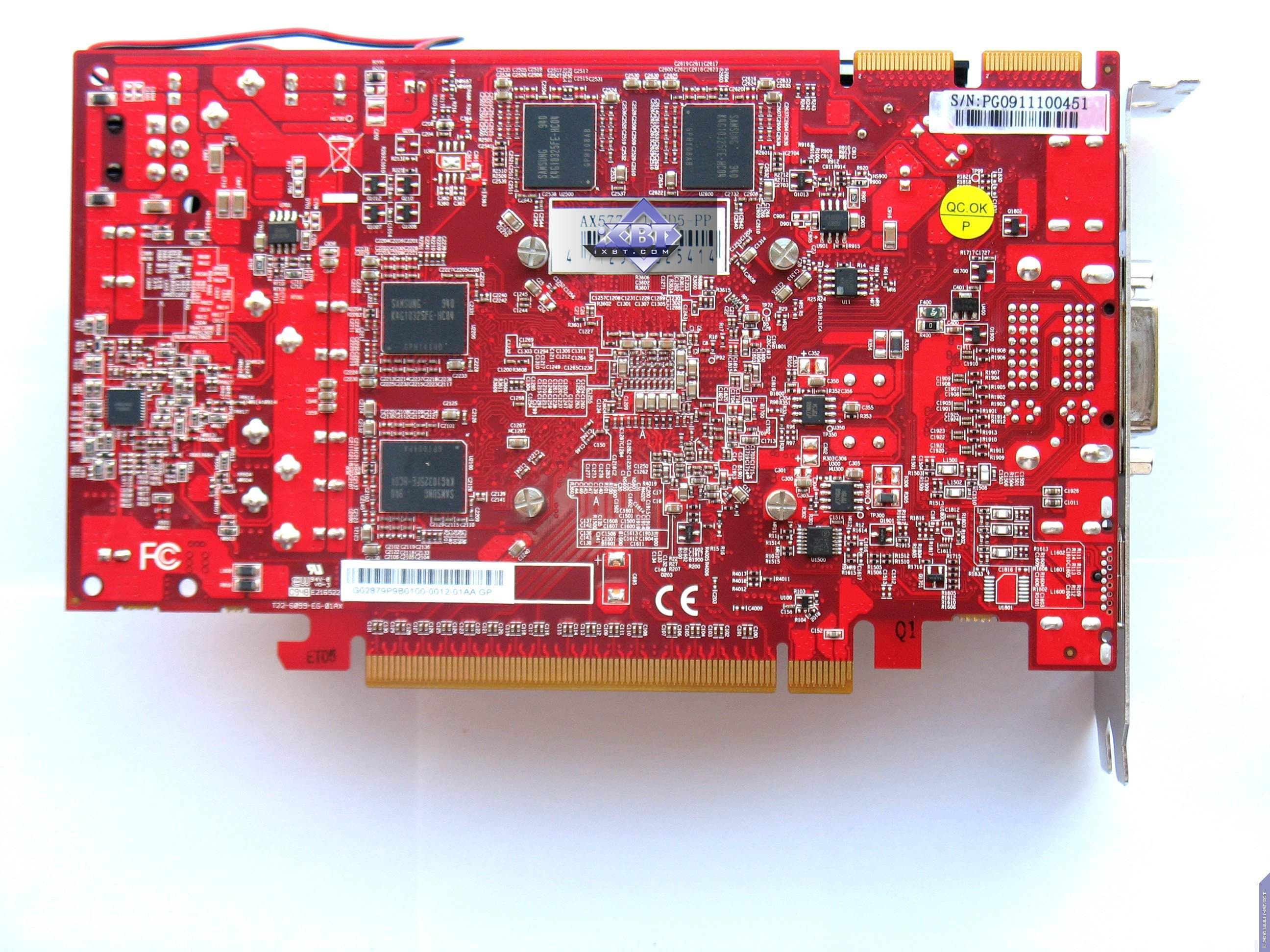 | Карта имеет 512 МБ памяти GDDR5 DRAM, размещенной в четырех микросхемах на лицевой стороне PCB. Микросхемы памяти Samsung (GDDR5). Микросхемы расчитаны на максимальную частоту работы в 1250 (5000) МГц. | ![]() |