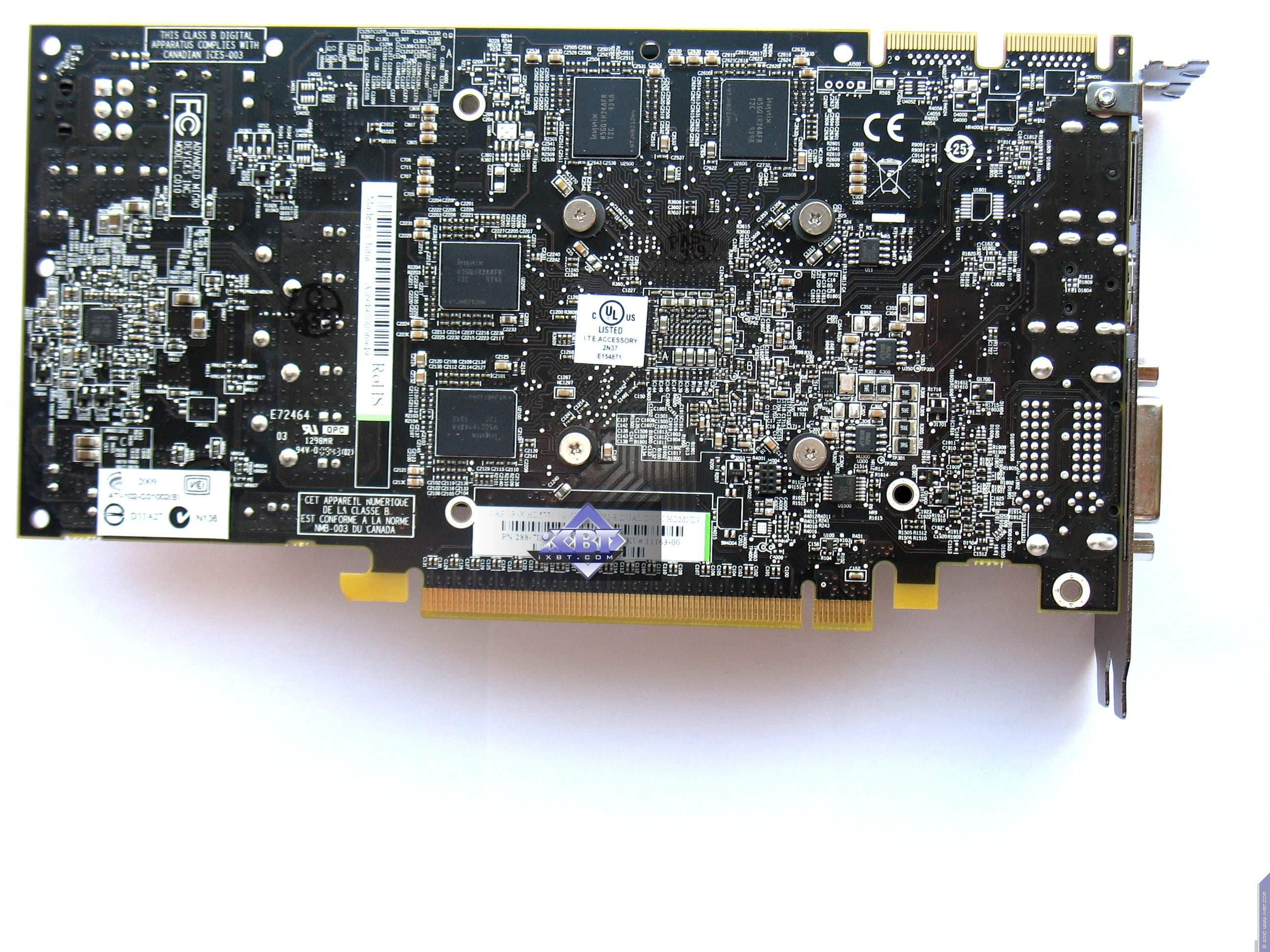 | Карта имеет 1024 МБ памяти GDDR5 DRAM, размещенной в восьми микросхемах (по четыре на каждой стороне PCB). Микросхемы памяти Hynix (GDDR5). Микросхемы рассчитаны на максимальную частоту работы в 1250 (5000) МГц. | ![]() |