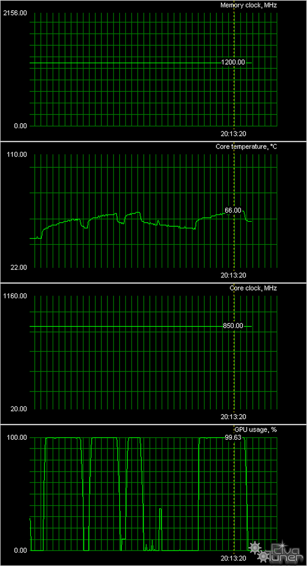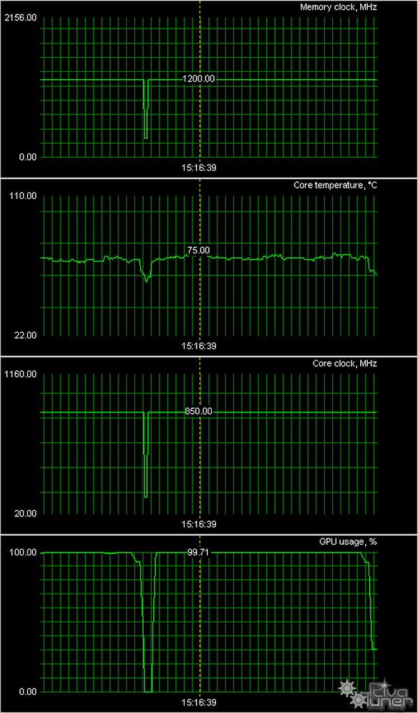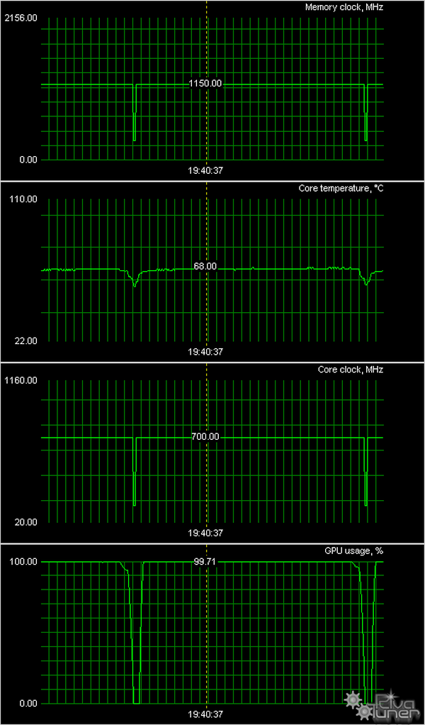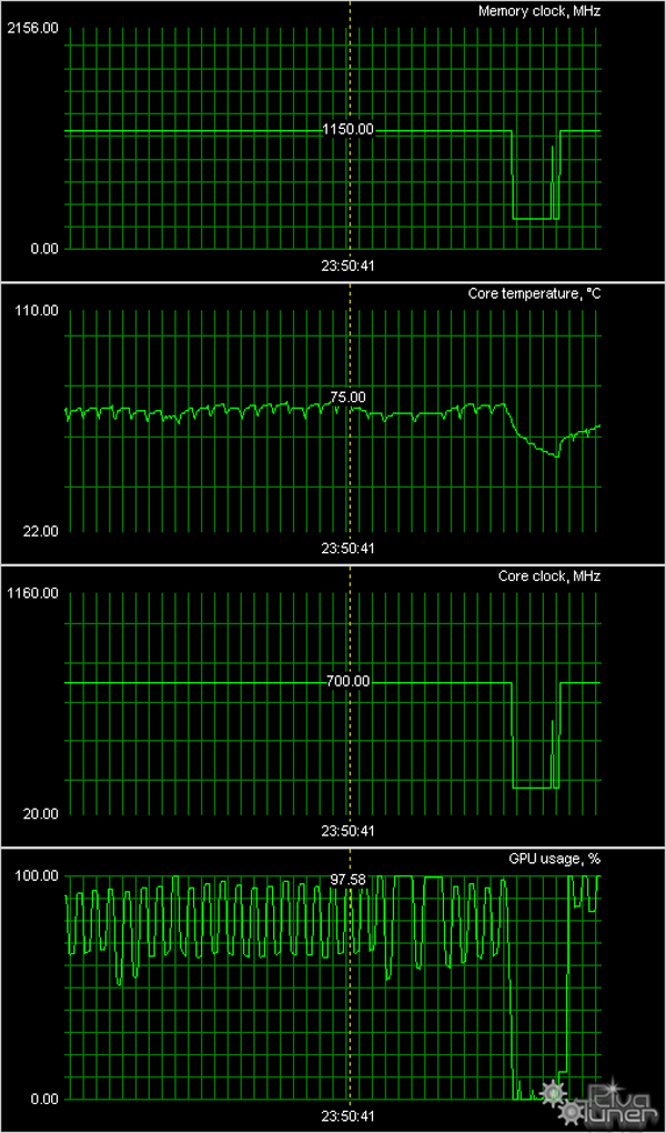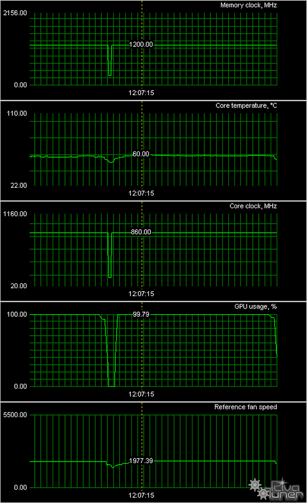 Мы провели исследование температурного режима с помощью утилиты RivaTuner (автор А.Николайчук AKA Unwinder) и получили следующие результаты: