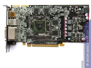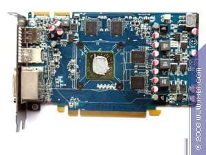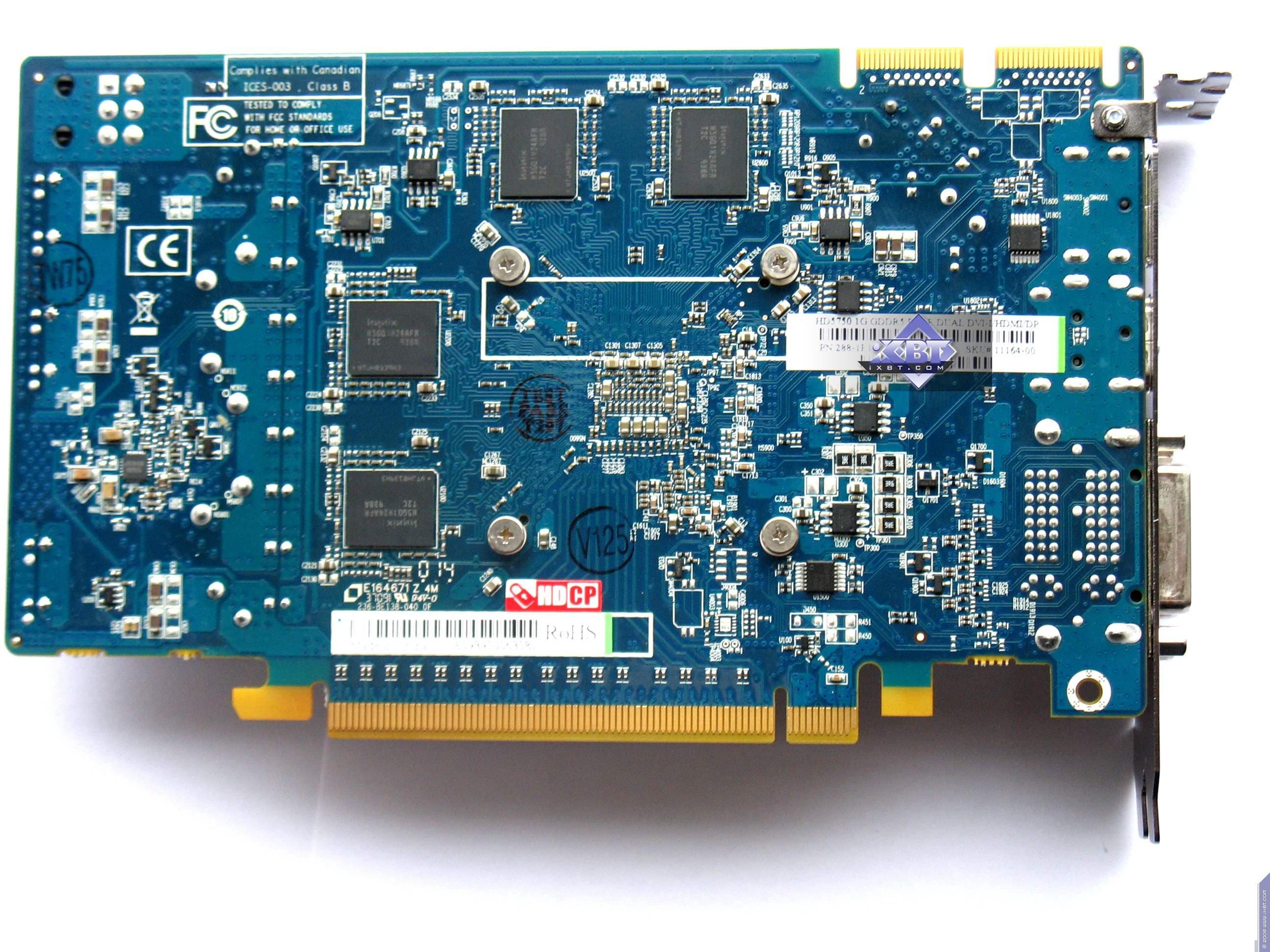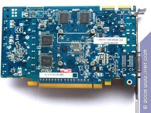 Мы не зря сравниваем PCB новых карт с HD 4770, поскольку последний также имел 128-битную шину обмена с памятью, а также поддерживал GDDR5. Однако в данном случае разводка сушественно изменилась. Если ранее все 8 микросхем памяти присутствовали на лицевой стороне печатной платы, то теперь половина на лицевой, а половина на оборотной. При этом было принято весьма странное решение - охлаждать только половину микросхем центральным кулером, когда как память на оборотной стороне осталась без охлаждения. Нам очень сложно понять чем руководствовались инженеры, уходя от размещения всех микросхем на лицевой стороне, когда как охлаждать их было бы проще.