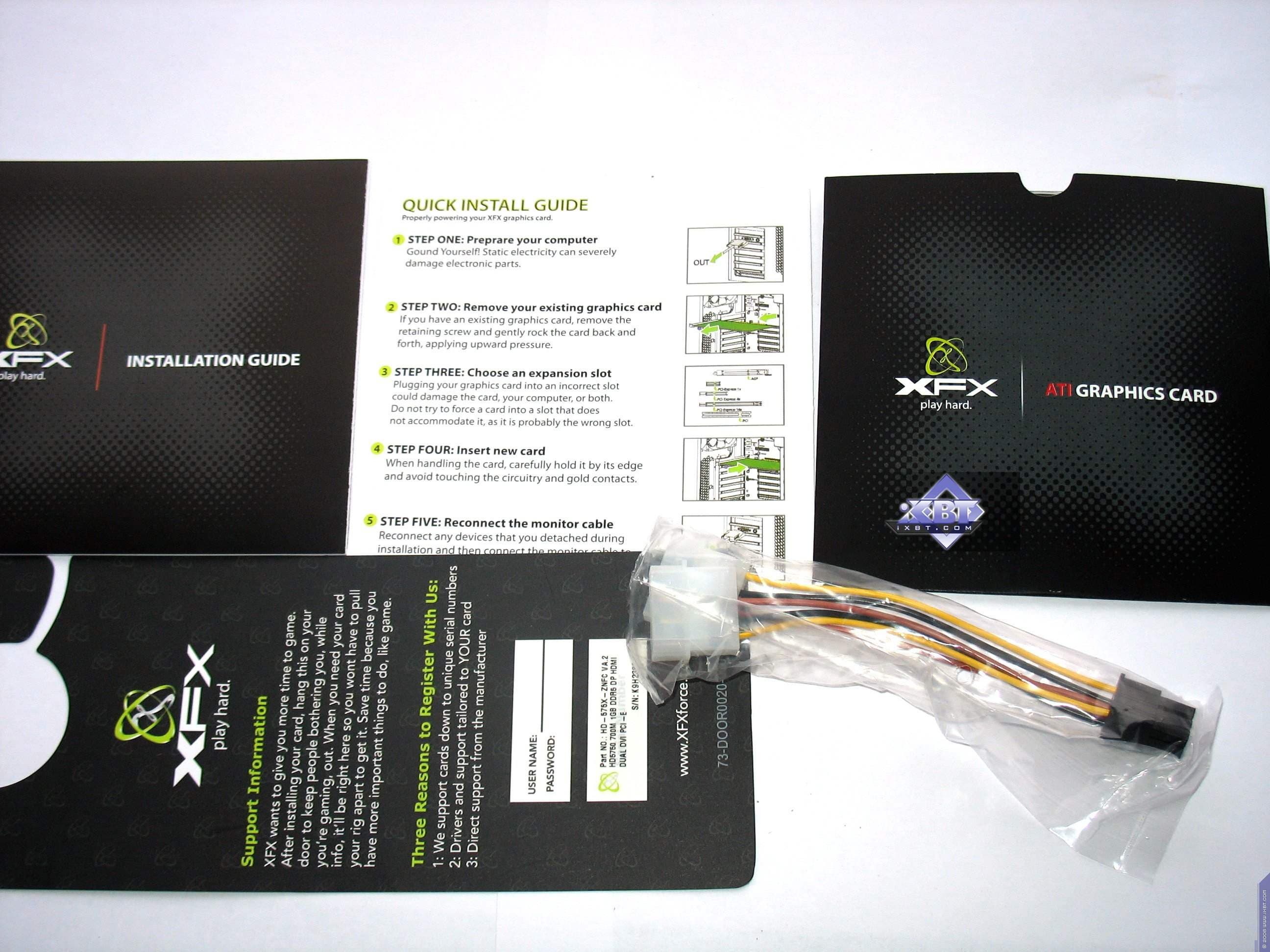 Базовый комплект поставки должен включать в себя: руководство пользователя, диск с драйверами и утилитами, переходник-адаптер DVI-to-VGA, адаптер CrossFire, а также разветвители внешнего питания. Далее, мы покажем, что предлагается к каждой карте дополнительно.