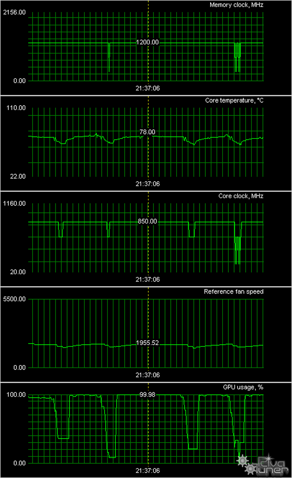 Для всех карт мы провели исследование температурного режима с помощью утилиты RivaTuner (автор А. Николайчук AKA Unwinder) и получили следующие результаты:
