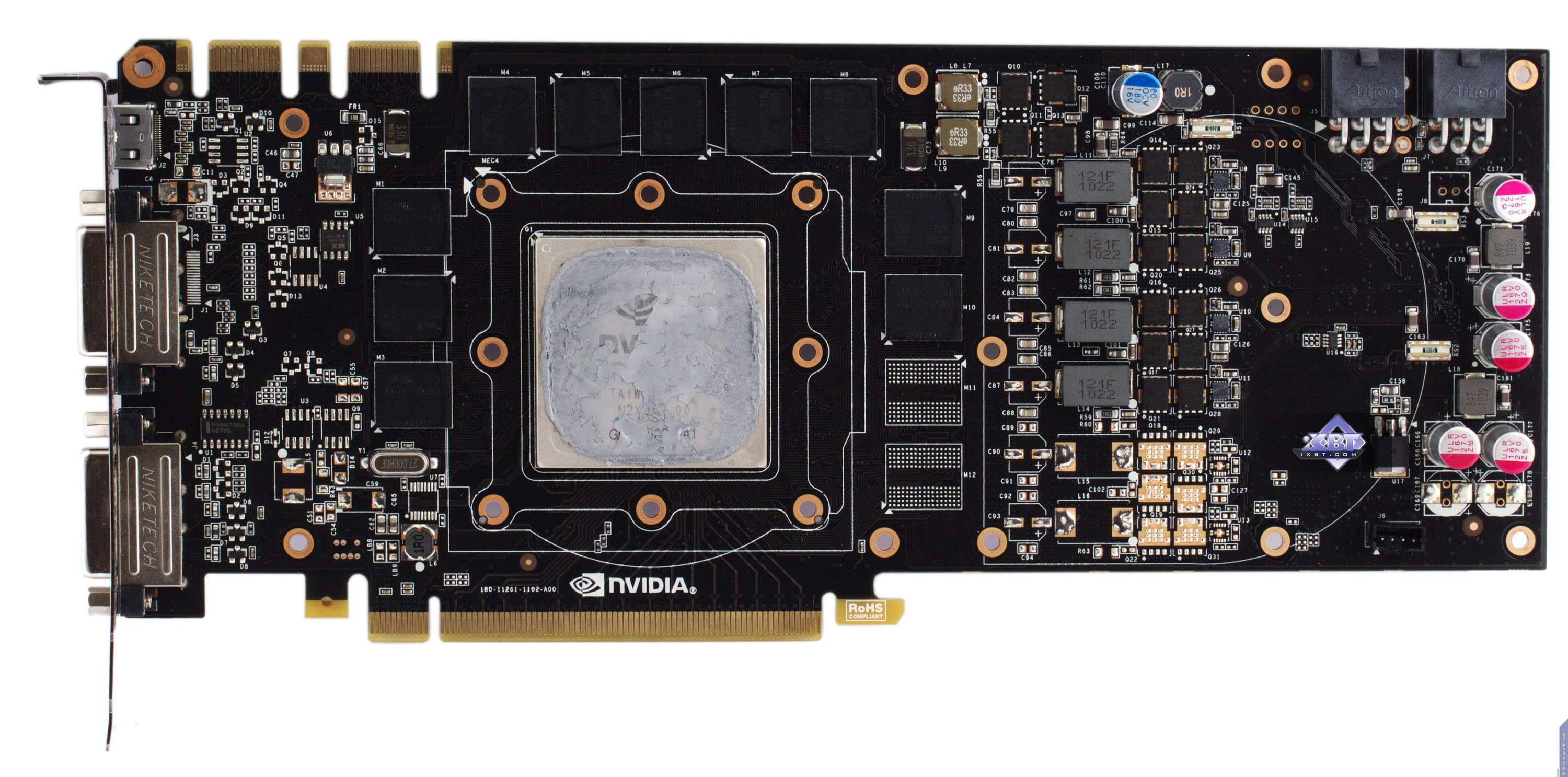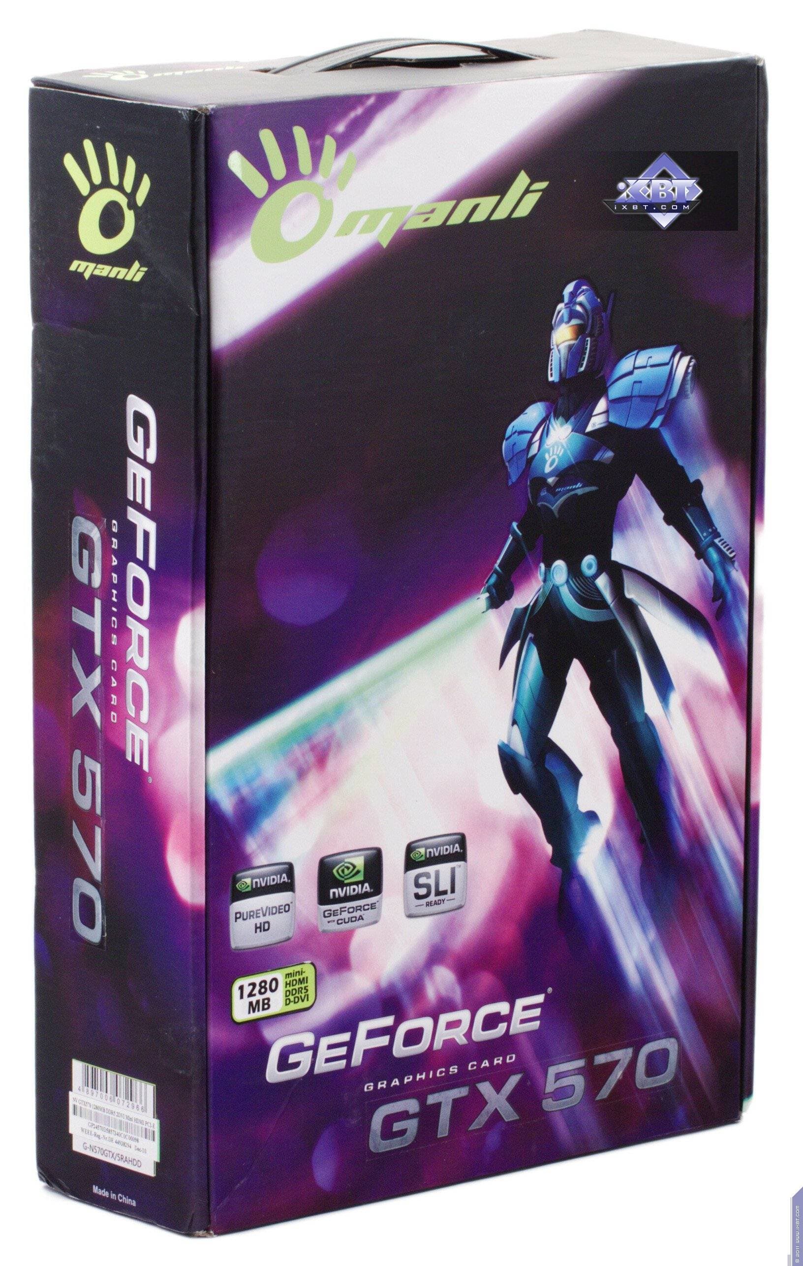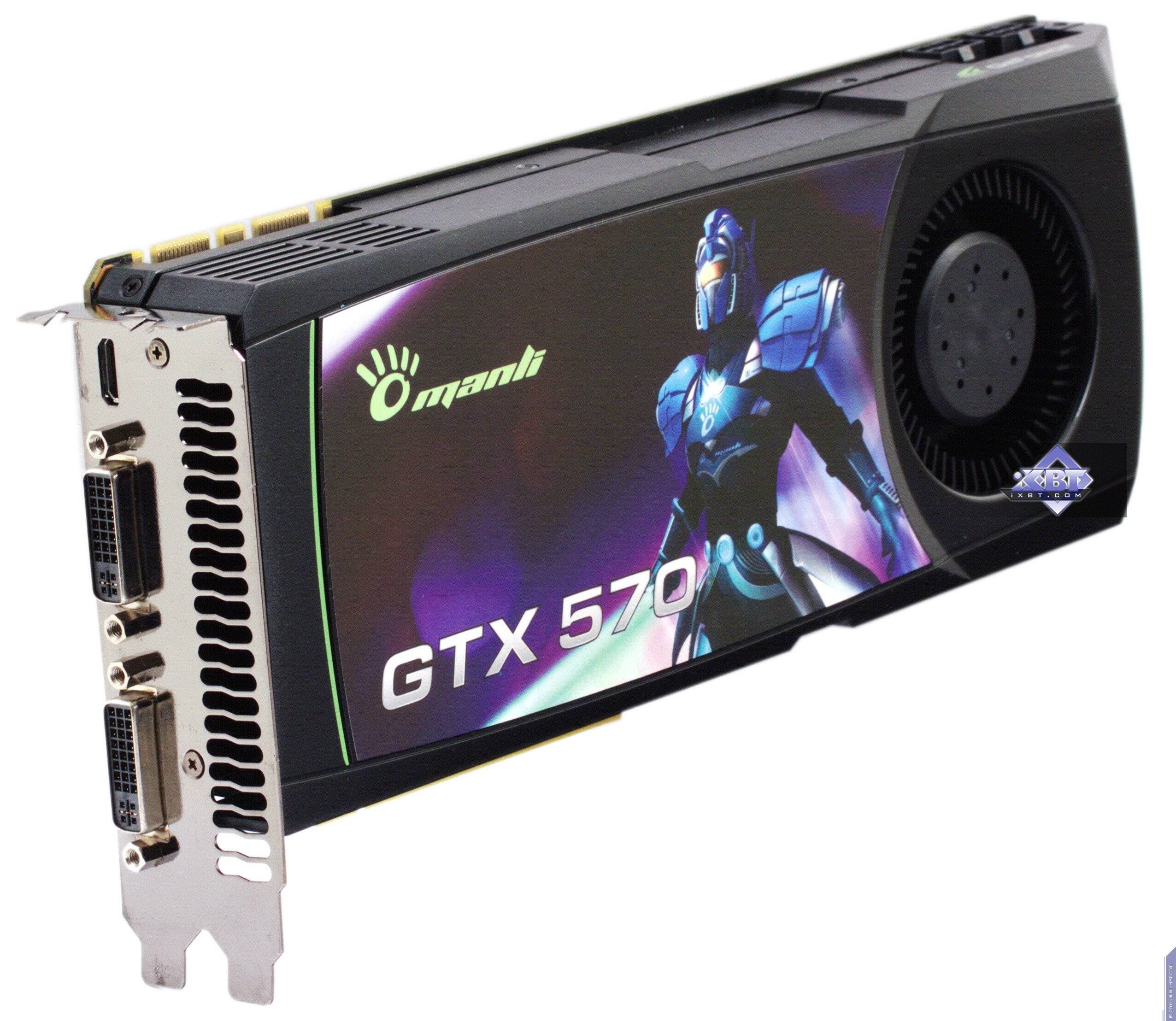 Что касается GTX 570, то это просто референсная карта, созданная на стороннем заводе по заказу Nvidia, а Manli, как и многие другие партнеры Nvidia, просто покупает готовые карты и снабжает их своими наклейками. Мы уже детально рассказывали о GTX 570 в нашем базовом материале, повторяться не буду.