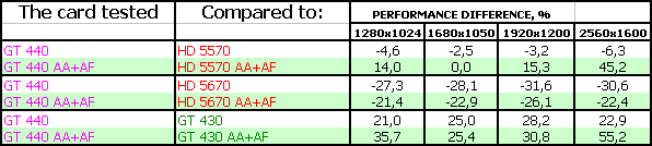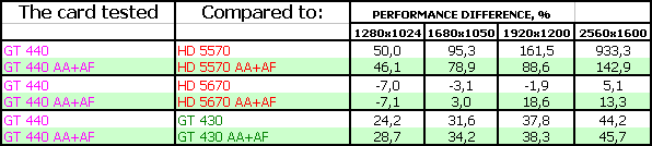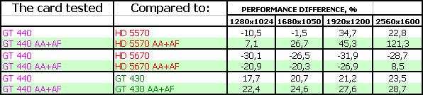 Данный вариант GTX 570 ничем не отличается от представленной на наших диаграммах аналогичной карты. Все детали и выводы по этой карте мы уже делали ранее. Поэтому сосредоточимся на GT 440.