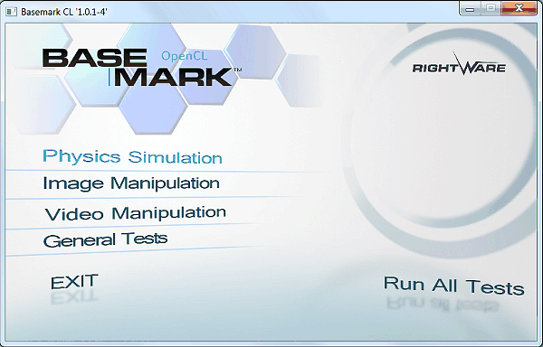 Тест Basemark CL компании Rightware — один из специализированных OpenCL-бенчмарков, содержащий синтетические тесты, разделенные на несколько категорий. В отличие от тех тестов, которые нацелены на чисто графические задачи, Basemark CL содержит и задачи других типов, вроде физических симуляций. Но и тестирование производительности в тестах обработки изображений и видеоданных в этом пакете есть. К сожалению, данный бенчмарк на настоящий момент в публичном доступе отсутствует, и это явный его недостаток.