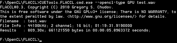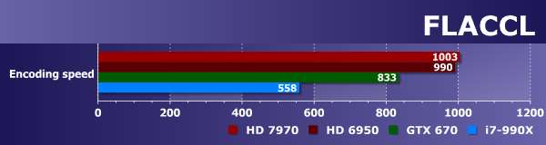 Программное обеспечение FLACCL (ранее известное как FlaCuda) не является тестом производительности как таковым — это решение для кодирования аудиоданных в формат FLAC (Free Lossless Audio Codec). FLAC — популярный свободный кодек, предназначенный для сжатия аудиоданных без потерь, в отличие от форматов сжатия с потерями, вроде MP3, AAC и Ogg Vorbis. FLAC, как и другие кодеки сжатия без потерь, часто используется меломанами и подходит для прослушивания музыки на высококачественной аппаратуре.